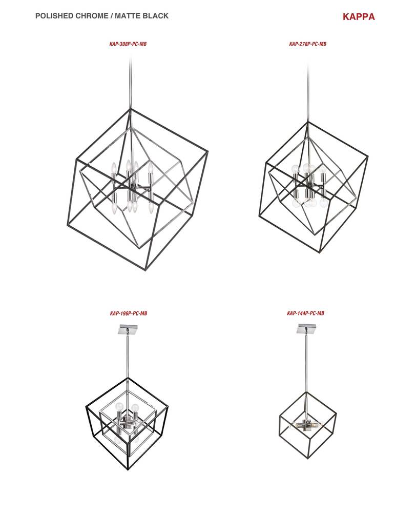 With its asymmetrical caged construction, the Kappa family of lighting offers eye appeal, and shows off your artistic sense of home décor. Available in three sizes, it can serve as a unifying element throughout your living space. The metal caged frame is set on its side for an intriguing perspective, in a finish that contrasts from the pendant drop. The double-cage configurations are available in either monochromatic or contrasting finishes. Round globe lights are set inside, horizontally and/or vertically depending on the configuration. The look is suitable for kitchens, dinettes or bar areas, offering a style that will work with modern, contemporary, and even some traditional décor schemes.
