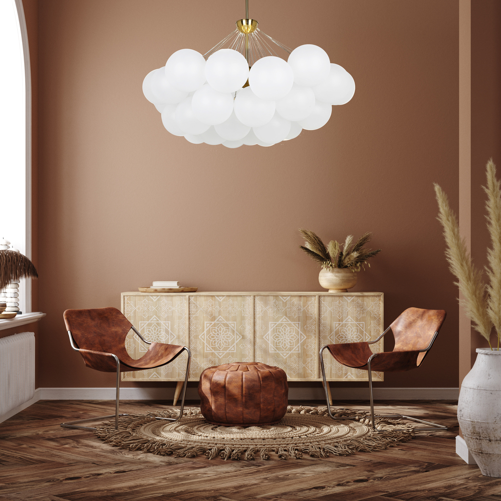 The Miles family of fixtures takes its inspiration from the buoyant appeal of balloons. Available in chandelier or flush mounted configurations, it's a funky take on contemporary designer style. The metal frame is rounded, creating a symmetrical design for either configuration. Light emanates in all directions from large globes, with a frosted finish for a skin-friendly glow. Miles lighting adds a bold stroke to contemporary décor schemes, and delightful curved lines to contrast minimalist furnishings. Its striking look is suitable for living rooms, bedrooms or an office setting.