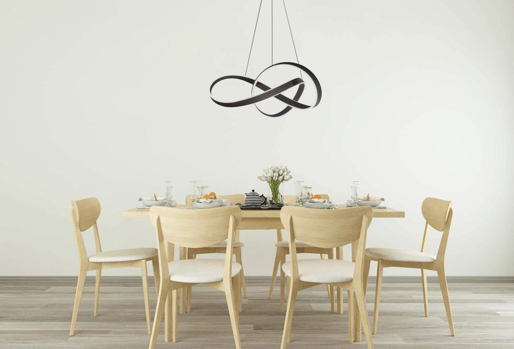 This ribbon like pendant gives you a continuous warm white flow. It will definitely be a beautiful focal point to any room.