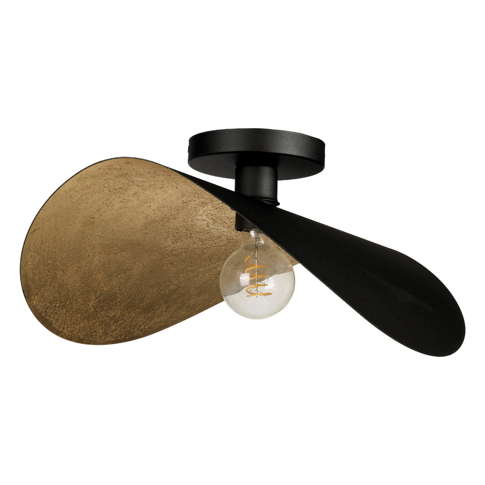 The Saceda is a whimsical, modern convertible pendant light featuring a wide, curved black metal shade. Composed of a sleek black canopy and shade lined with gold leaf, it will be a captivating contrast that adds a touch of luxury to any room. The underside of the shade features hand-applied gold leaf to reflect the light from the bulb (not included). With its adaptable design, this fixture includes two canopies, letting you choose between a pendant installation or a flush mount to suit your space. Ideal for dining areas, kitchens, or living spaces, this pendant offers a soft, ambient glow, enhancing the atmosphere with its unique, sculptural form.