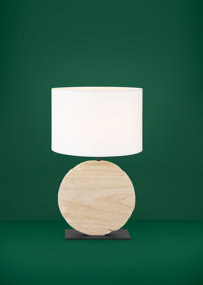 The CONTESSORE table lamp has a round base made of natural hardwood combined with a round white fabric shade. The large table lamp can be switched on and off easily with the in-line switch and blends superbly with modern and natural interiors . The lamp provides cosy lighting for any space.
