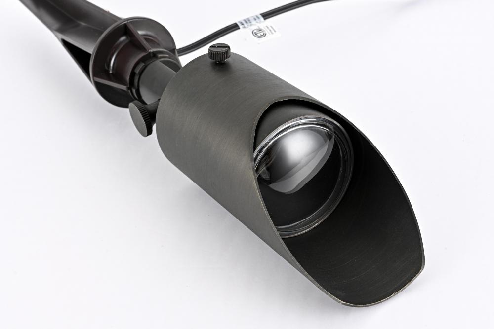 Illuminate your outdoor space with our premium 12-volt cast brass spotlights, designed to bring both durability and elegance to your landscape. Featuring a sleek dark bronze finish, these spotlights seamlessly complement any setting while delivering focused, powerful illumination through a convex glass lens that magnifies the light. Equipped with an MR16 halogen base (compatible with up to 35-watt bulbs) and a sturdy 8-inch plastic mounting stake, installation is quick and secure. with 3 feet of electric wire included, you have the flexibility to perfectly position your lighting for maximum effect. Elevate your outdoor aesthetics with these reliable, high-performance spotlights that are built to withstand the elements and shine brightly for years to come.