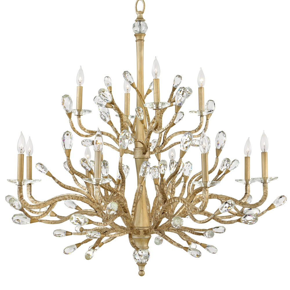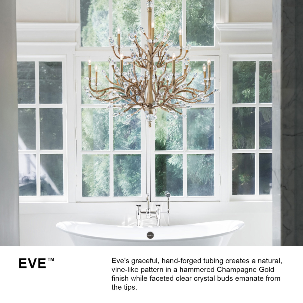 Eve's graceful, hand-forged tubing creates a natural, vine-like pattern in a hammered Champagne Gold finish while faceted clear crystal buds emanate from the tips.