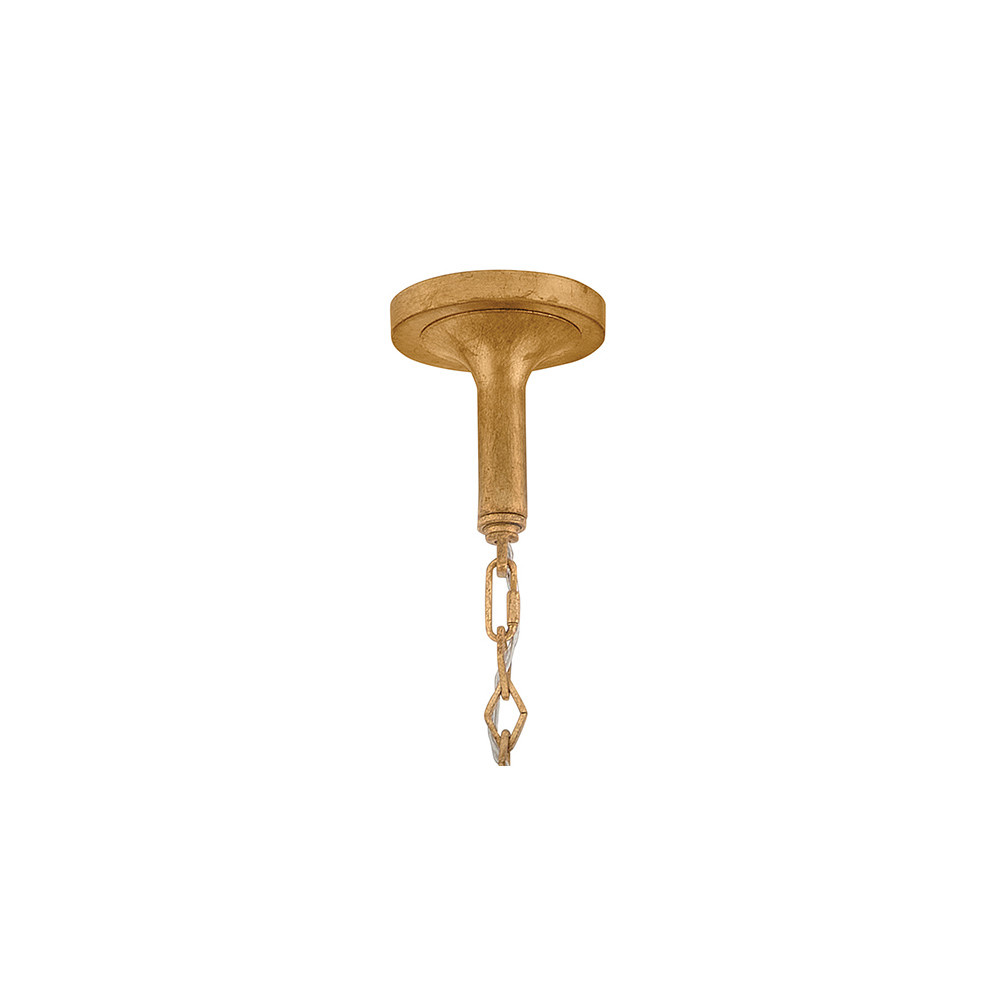 Inspired by the grand leaves and distinct veining of anthurium plants, found in the tropical cloud forests of South America, Camille brings botanical beauty to your living space. Each Distressed Brass layer is artfully laser-cut, shaped, and hand-painted with gold leaf to create a luxe transitional design, suspended by diamond-shaped chains and a tapered canopy.