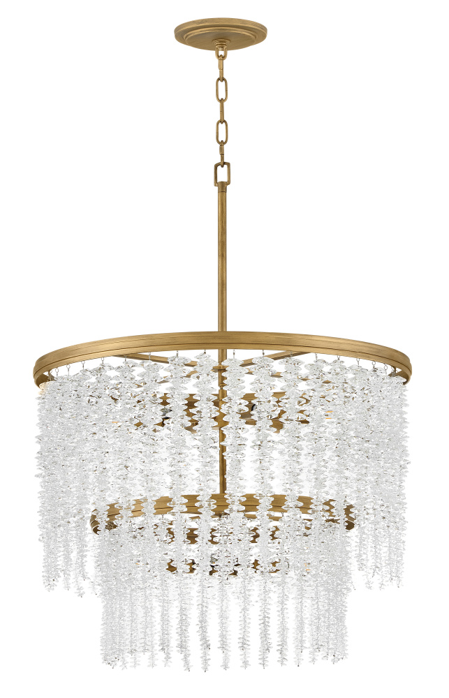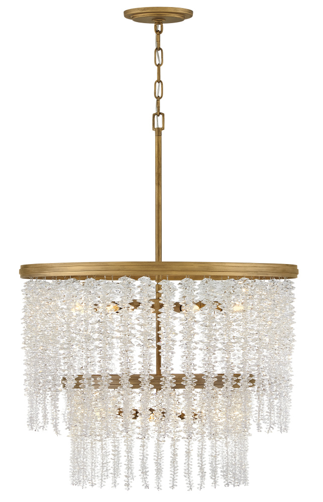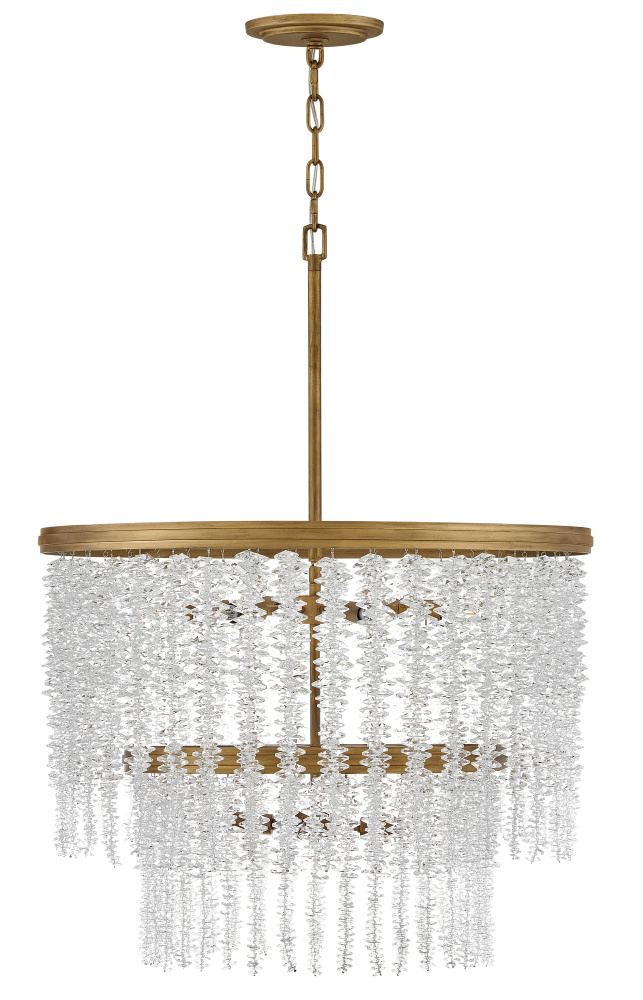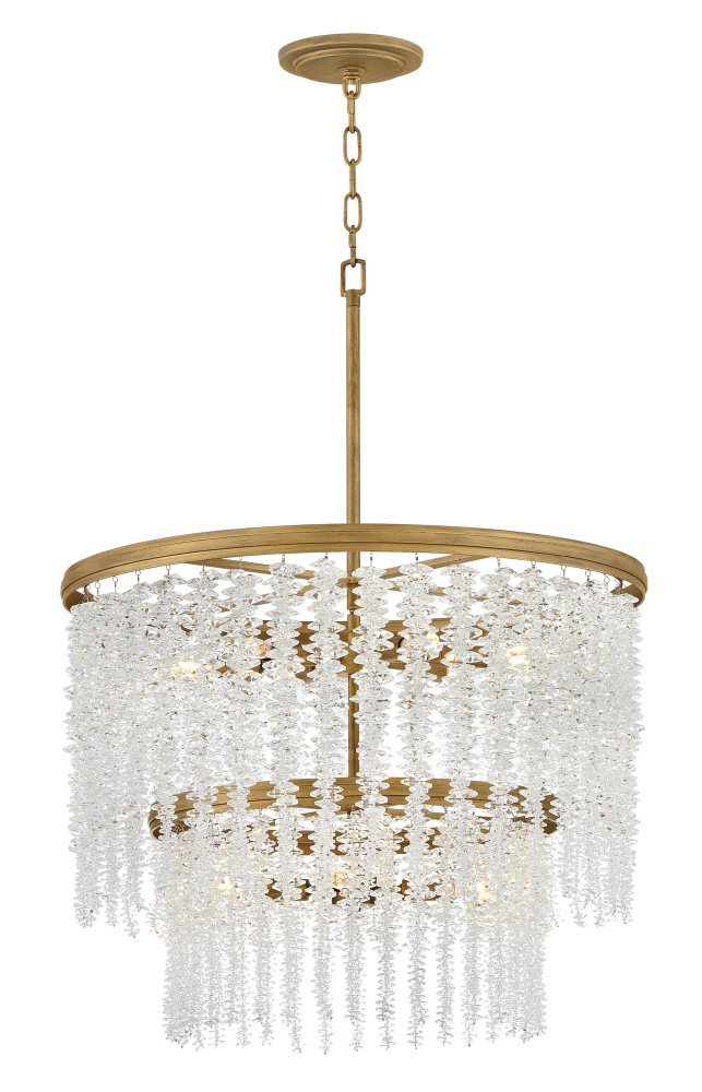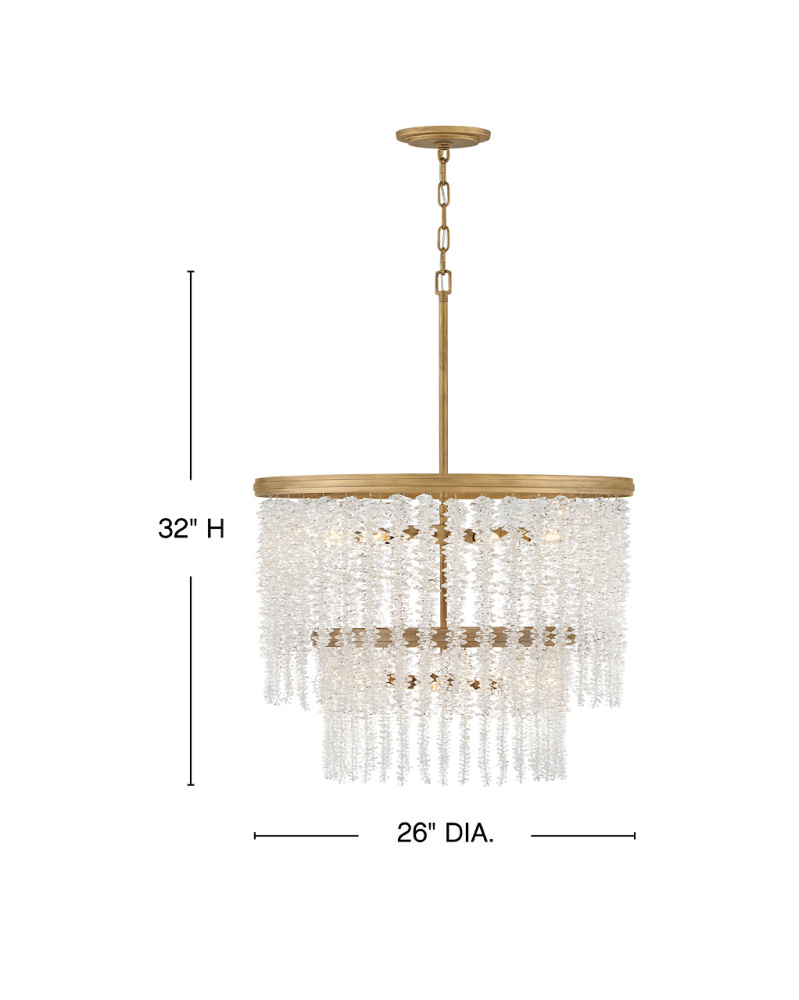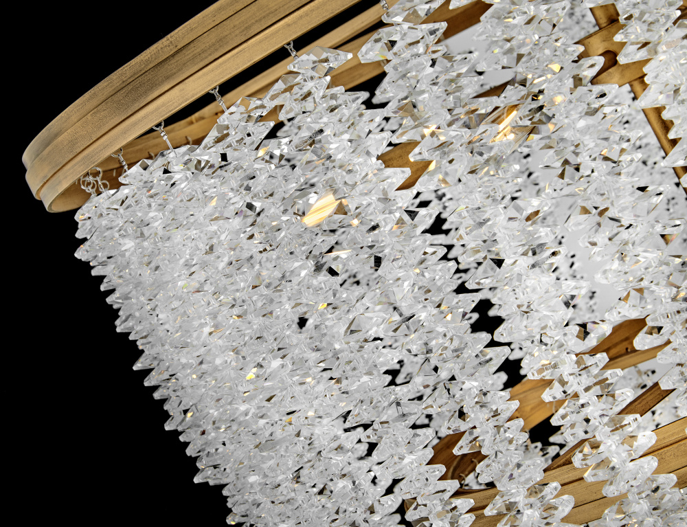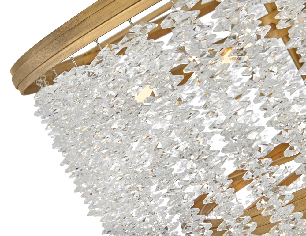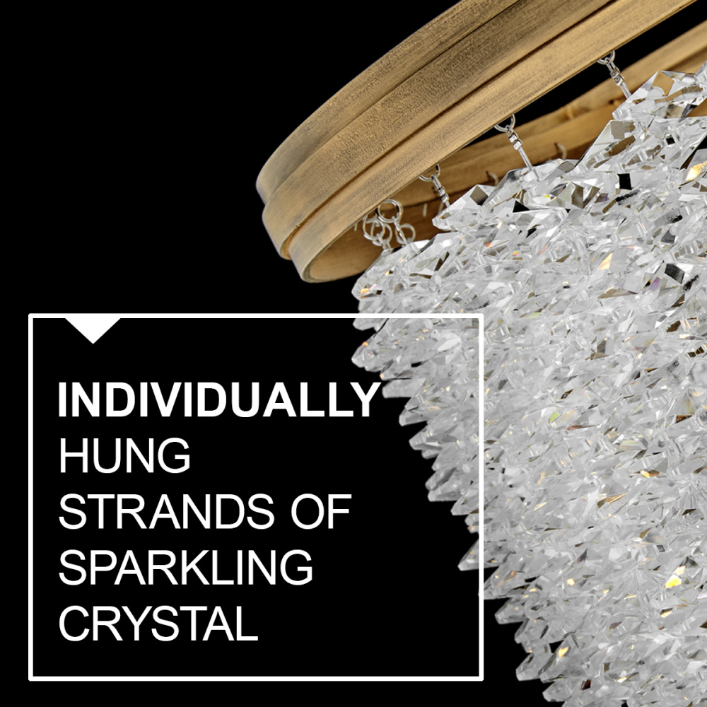 Dripping with glamour, Rubina’s magnificent shade is crafted from individually hung strands of sparkling crystal. A traditional tiered frame accentuates every beautiful refraction with its Burnished Gold finish.