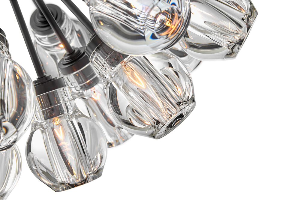 Elise infuses spaces with mesmerizing elegance. Light dramatically refracts from jaw-dropping, rounded, thick-cut crystal shades arranged in an enticing cluster formation. The robust arms, offered in either rich Black or Heritage Brass finishes, extend outward in a beautiful radiating pattern.