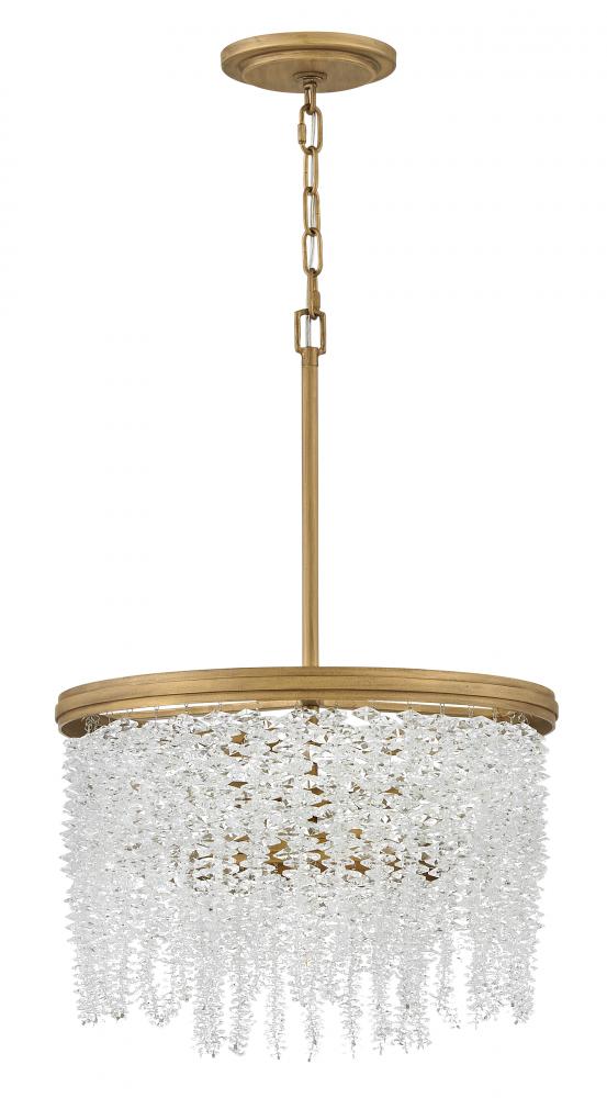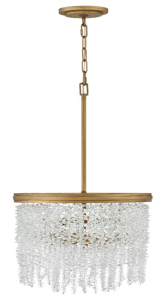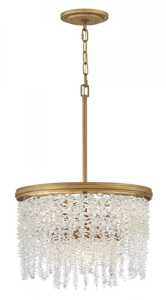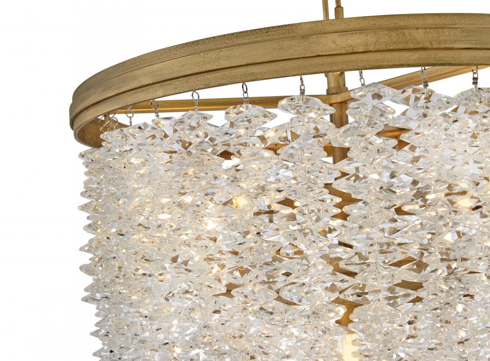 Dripping with glamour, Rubina’s magnificent shade is crafted from individually hung strands of sparkling crystal. A traditional tiered frame accentuates every beautiful refraction with its Burnished Gold finish.