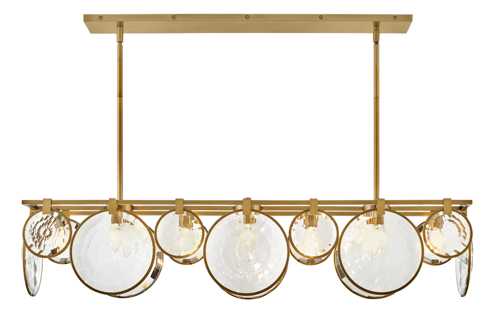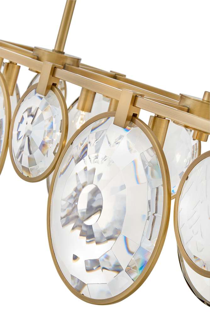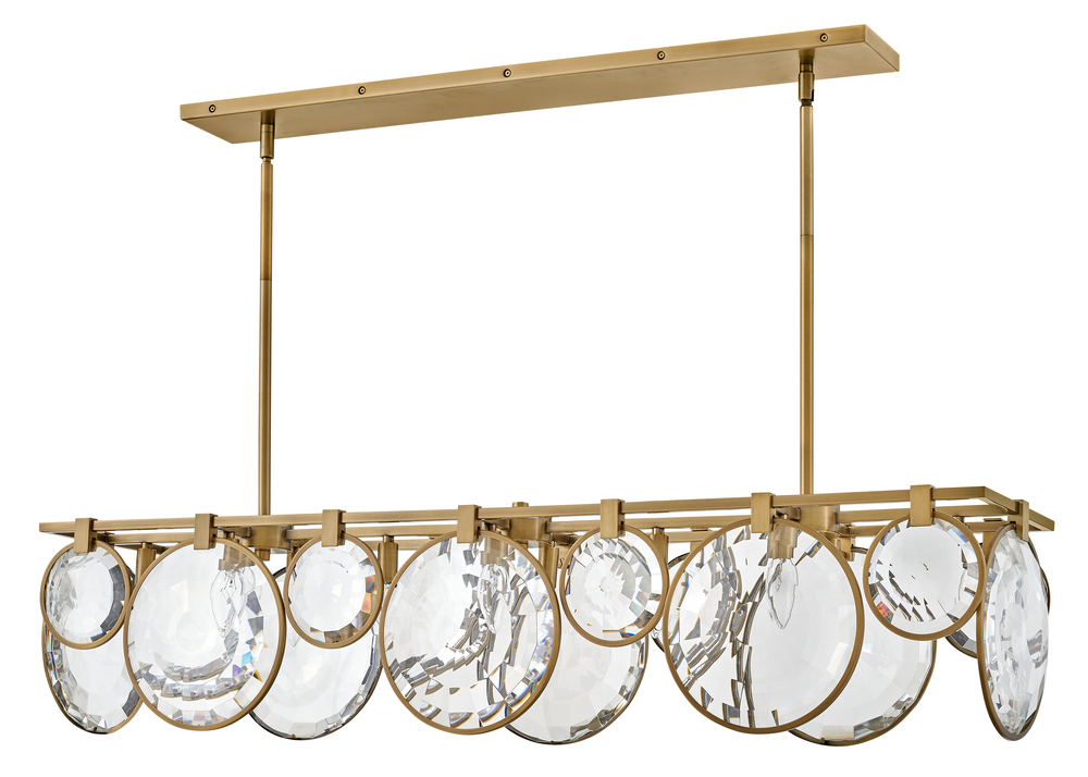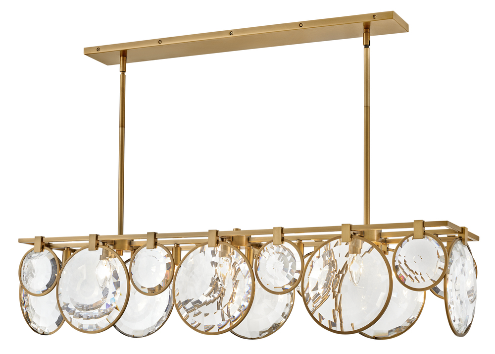 Nala is striking from any angle with a traditional silhouette and elegant eye-catching details. Multi-faceted, optic-crystal lenses surround the circular frame and attach with cast clips in Heritage Brass and Black finishes.