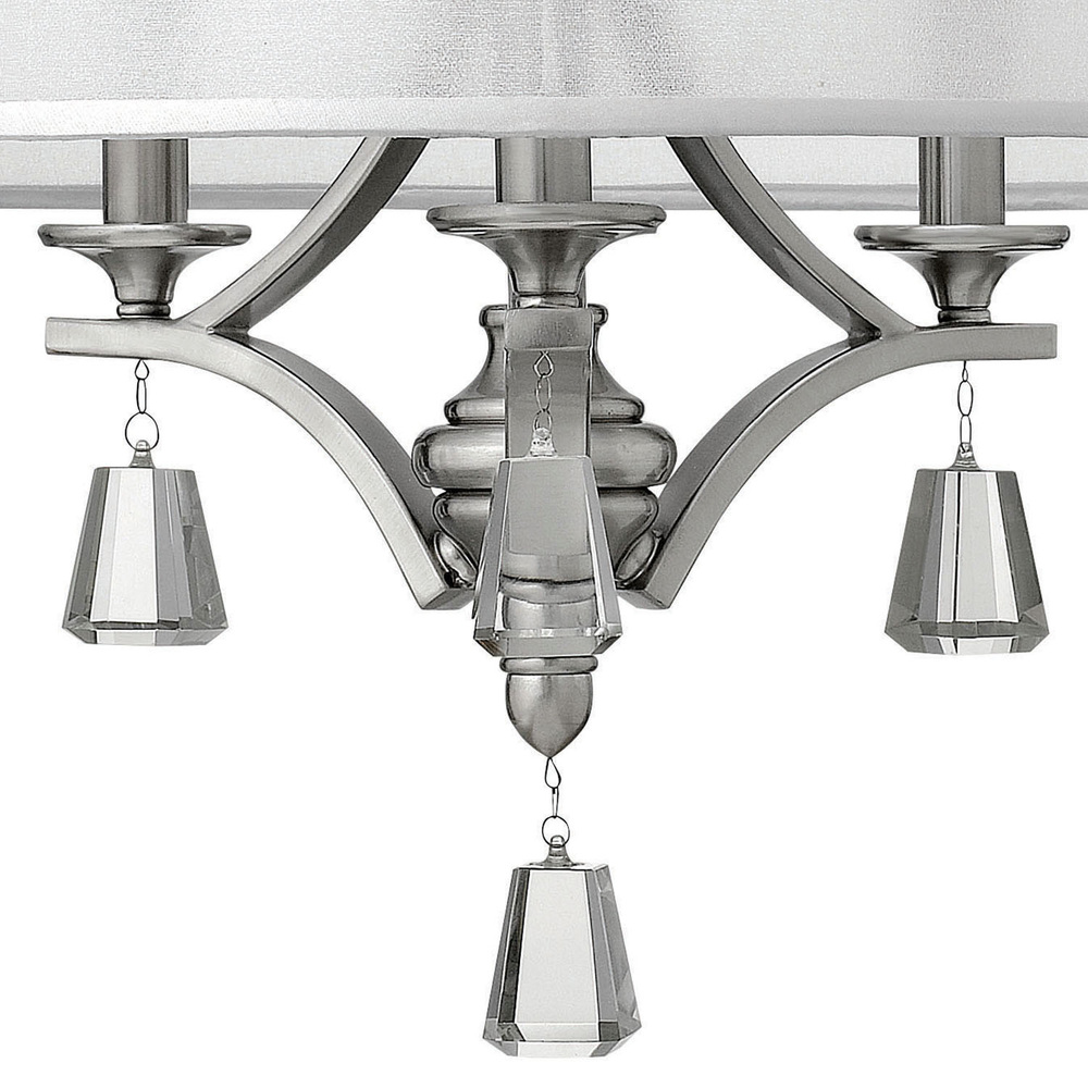 This elegant collection in a Brushed Nickel and French Bronze finish features a sheer translucent double hardback shade and tapered square crystal accents.