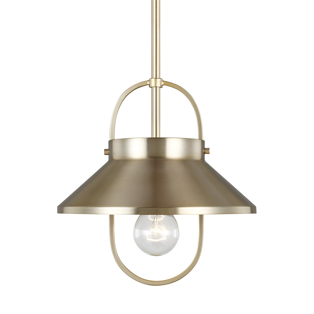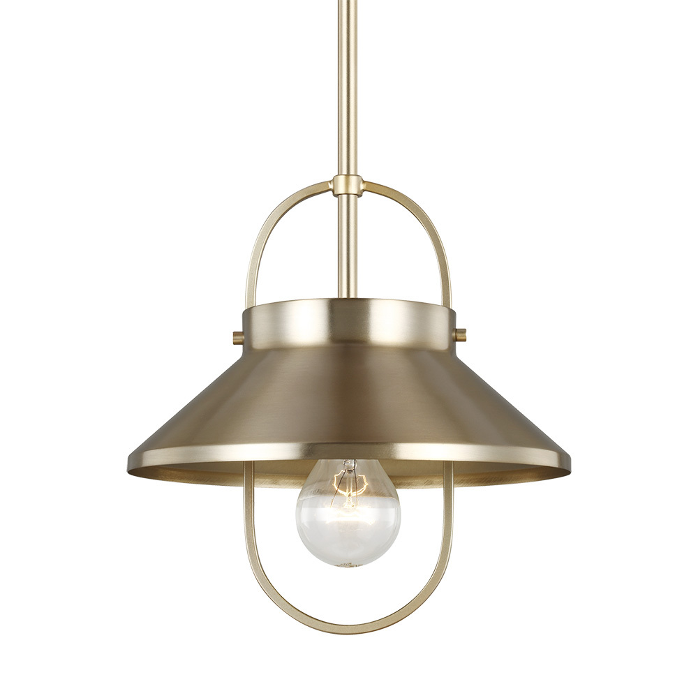 The Dormer one light indoor pendant in Satin Brass is the perfect way to bring an element of industrial vibe into any interior space, the simple pendant is an inspiration from converted lofts and rustic cottage dwellings. Both incandescent lamping and ENERGY STAR-qualified LED lamping are available; all fixtures are California Title 24 compliant.