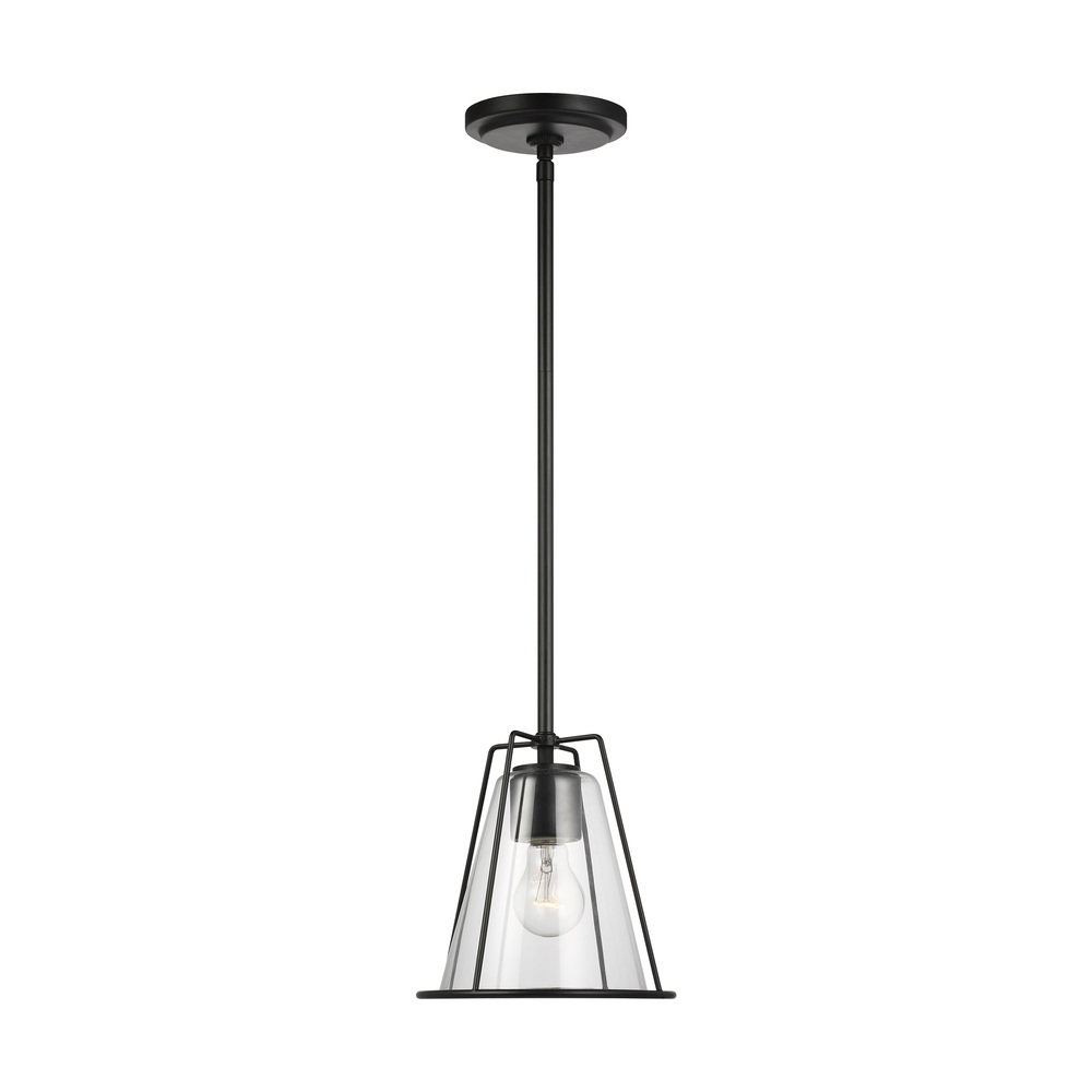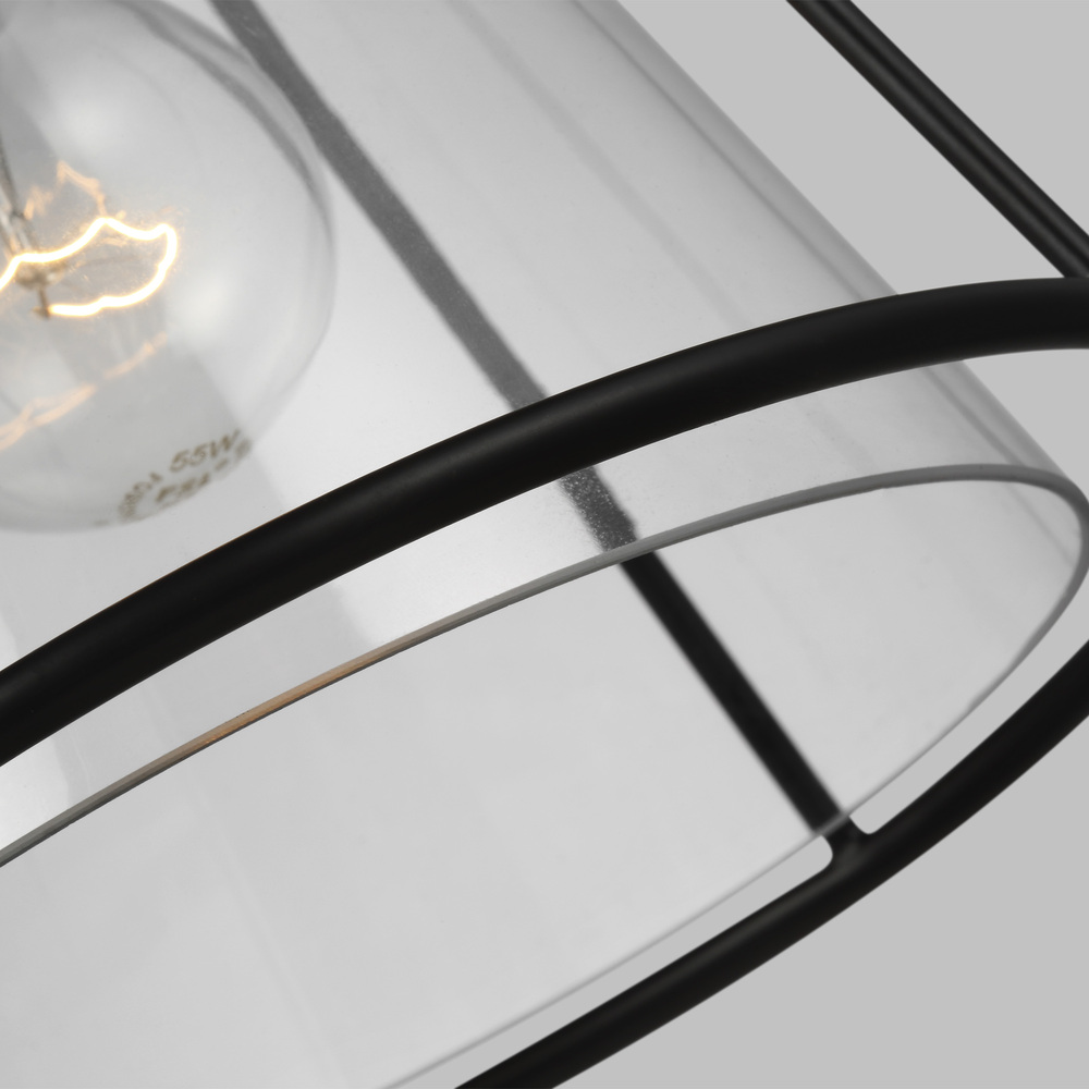 The Framework one light indoor pendant is offered in Brushed Nickel, Matte White and Midnight Black. Crafted of metal with a flared silhouette and clear glass shade. Can be used in multiples above a kitchen island or long dining table for added impact. Both incandescent lamping and ENERGY STAR-qualified LED lamping are available; all fixtures are California Title 24 compliant.