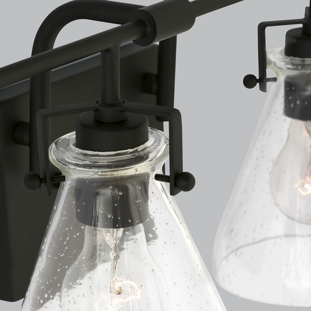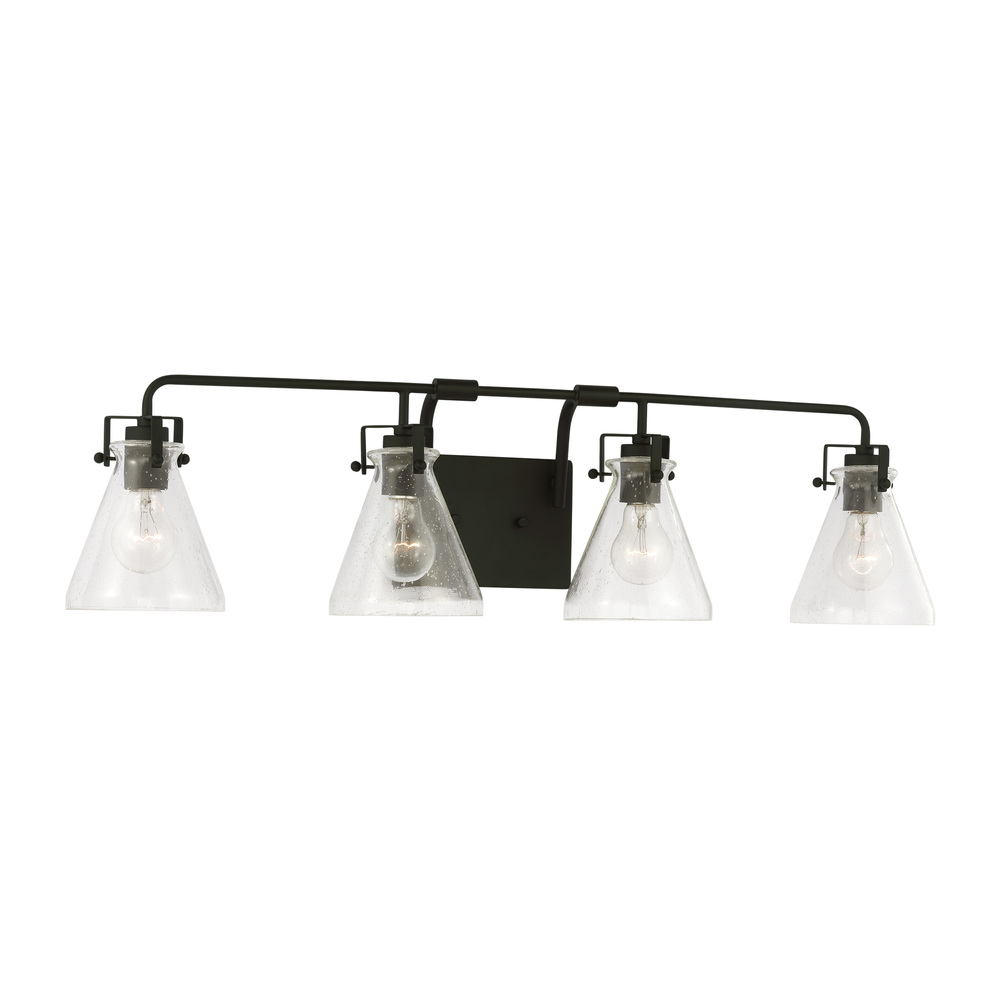 The Jaden four light vanity fixture in midnight black provides abundant light for your bath vanity, while adding a layer of today's style to your interior design.