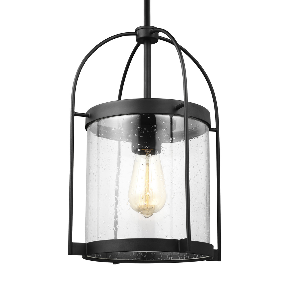 The Kenny one light indoor pendant in Midnight Black has the perfect combination of cylindrical shape and curvy lines makes it a simple yet modern lantern. Crafted from metal, its streamlined body combines cylindrical silhouettes with curving accents that cast a glow throughout your space.