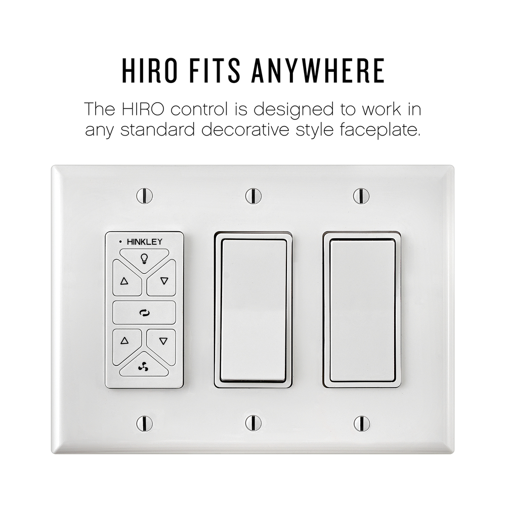 Built with a sleek, carefully crafted design, Chisel redefines dramatic style. Sturdy solid wood blades are available in a variety of sophisticated finishes to complement modern interiors and outdoor settings. Damp rated. Equipped with a 6-speed DC motor that is WiFi enabled and ready to connect right out of the box. Operated by the HIRO control or WiFi compatible with the Hinkley App.