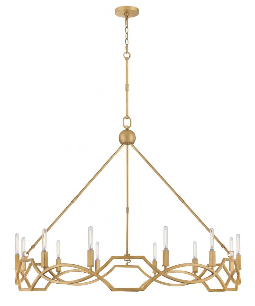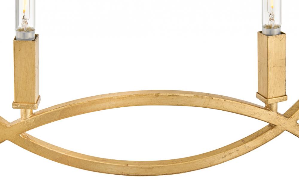 Leona’s decorative scrollwork is crafted from a gently curved, smoothly welded frame finished in hand-leafed Distressed Brass. Clean shapes complemented by exposed candelabra lamps create a family of formal fixtures with undeniable charm.