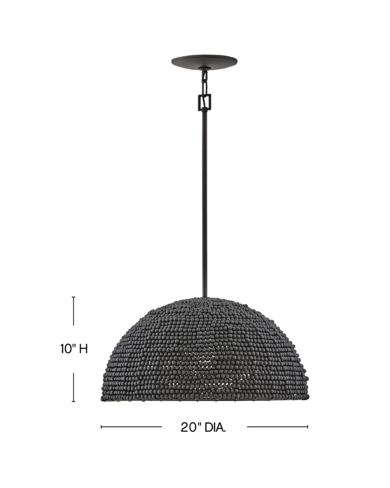 A warm, textural take on a traditional dome pendant, Dalia’s details come together in all the right ways. The dome shade is adorned with wooden beads, each one hand-strung for a unique look. The graceful, oversized profile is ready to finish-off your bohemian or Scandinavian look.