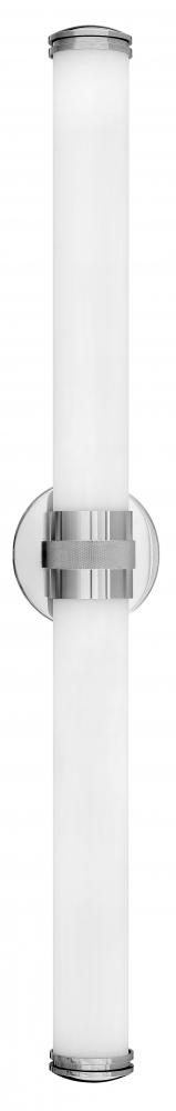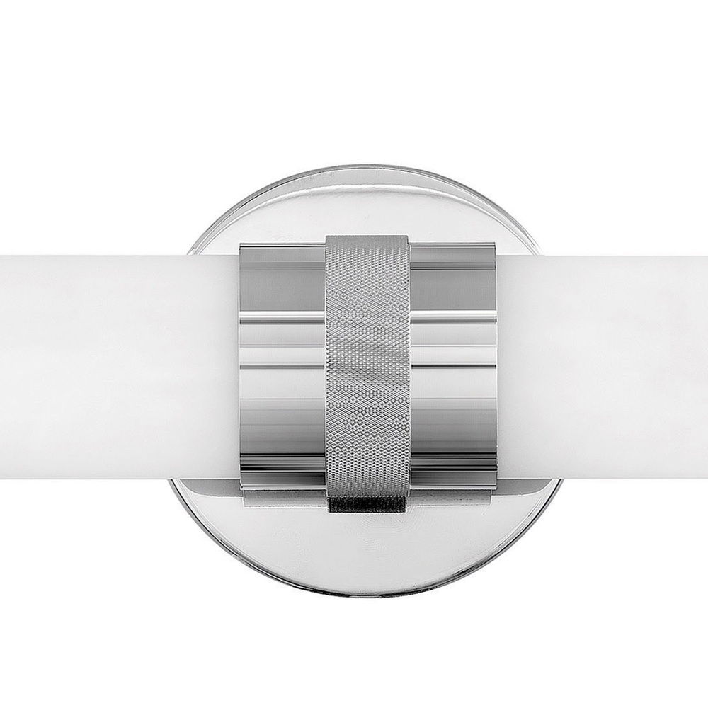 Remi's slim profile and sophisticated details seamlessly merge with LED technology to master both form and function. The etched white glass cylinder is finely detailed with precise, stepped end caps, and the cast knurled bracelet in luxe finish options is artfully crafted with vintage appeal. This chic, transitional design ensures Remi's ability to complement a wide variety of bath or interior spaces.