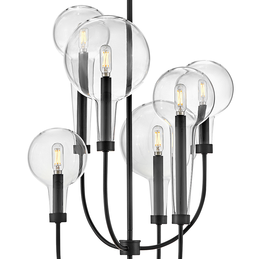 Inspired by the vintage flasks of a chemistry classroom, Alchemy is a unique statement piece. Its tapered globes instantly stand out in a variety of spaces, while the open silhouette enhances its sophisticated edge.