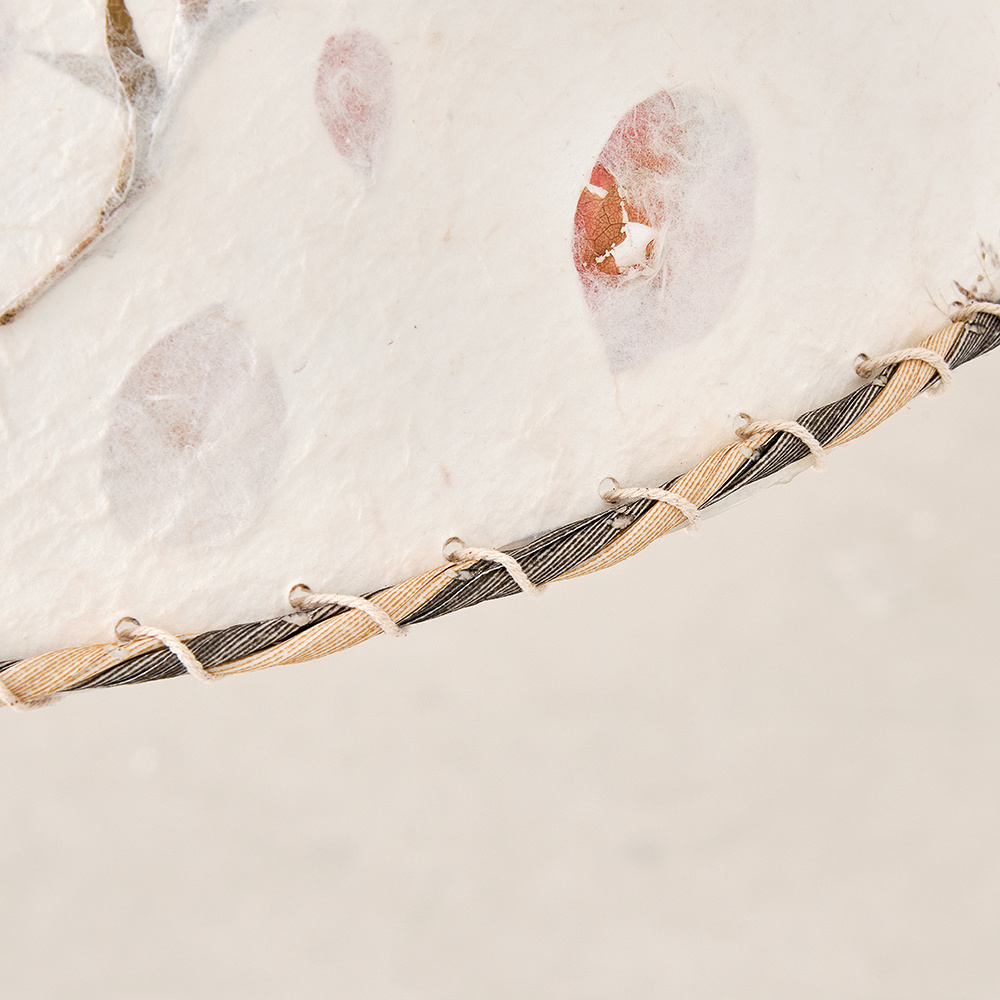 Artisan-crafted from handmade paper pressed with real flowers, Primrose’s delightful shade with twisted rope detailing brings truly unique beauty and cozy ambiance to your space. Its elegant conical silhouette is suspended gracefully from delicate chains, enhanced by a warm Distressed Brass finish.