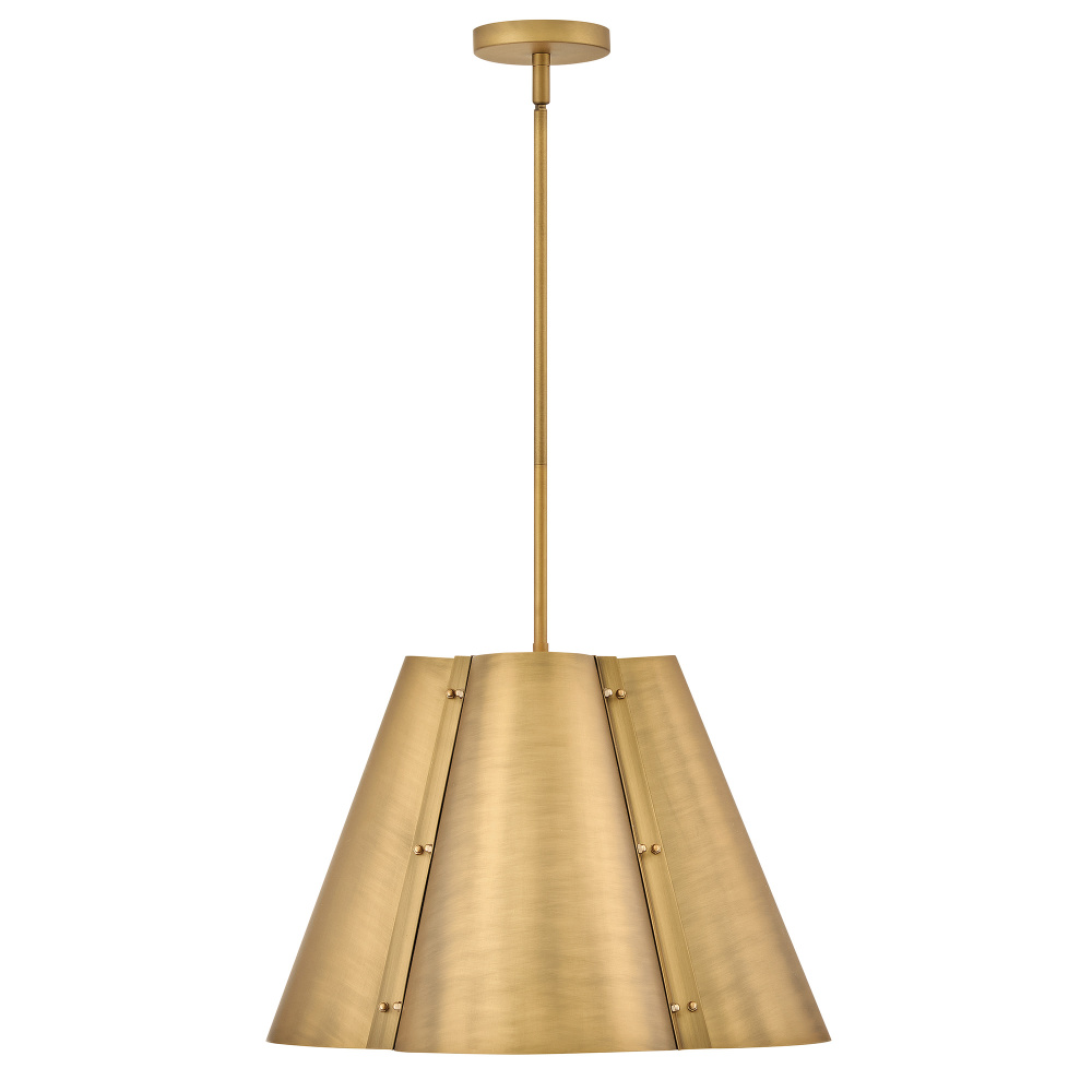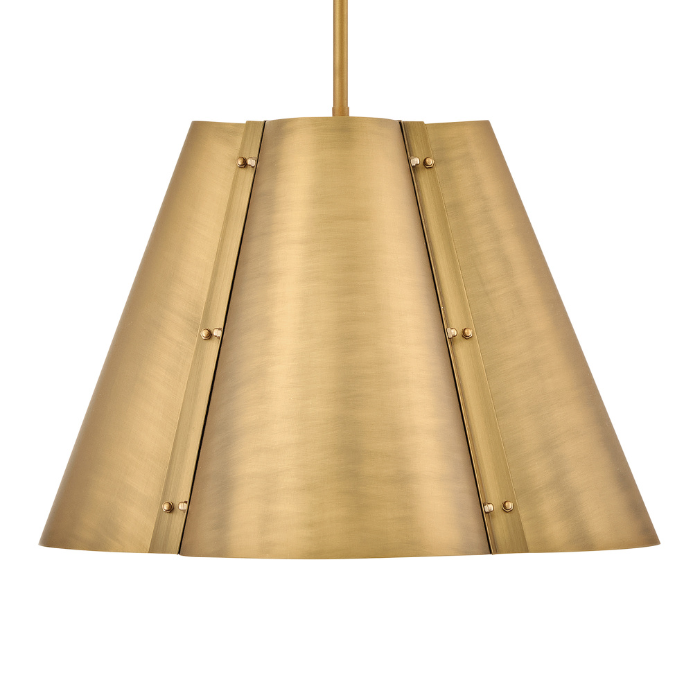 Strong in style and design, Bowman’s makes a transitional statement with a tapered quatrefoil shade accented by decorative knobs along symmetrical vertical supports. Heritage Brass or Slate Bronze finishes complement any living or dining decor with polished metallic tones.