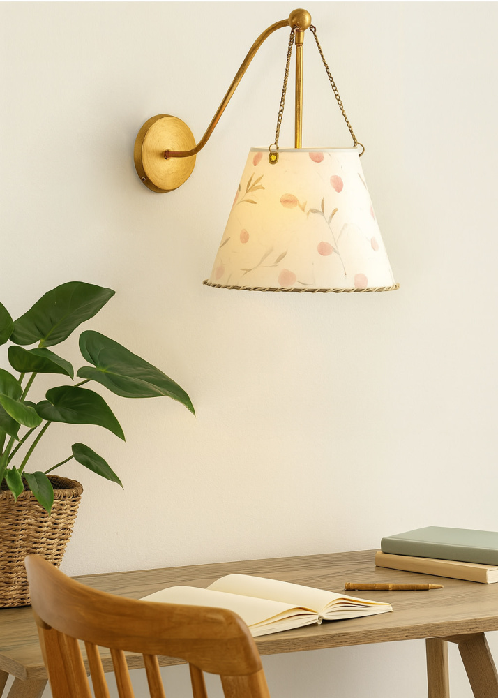 Artisan-crafted from handmade paper pressed with real flowers, Primrose’s delightful shade with twisted rope detailing brings truly unique beauty and cozy ambiance to your space. Its elegant conical silhouette is suspended gracefully from delicate chains, enhanced by a warm Distressed Brass finish.