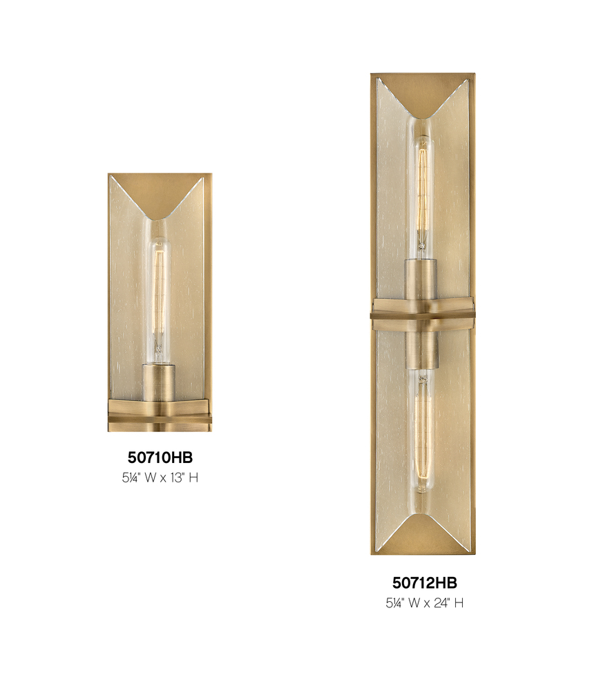 Astoria is a sophisticated showstopper! Astoria’s bias cut clear seedy glass beautifully blends with luxe finishes for a dazzling effect. It’s unique silhouette makes a sleek, stylish statement in Black Oxide or Heritage Brass.