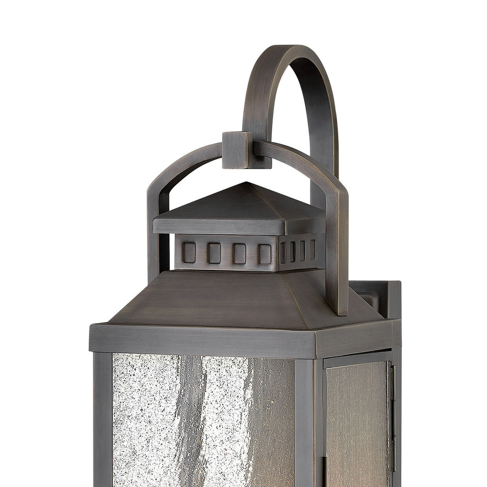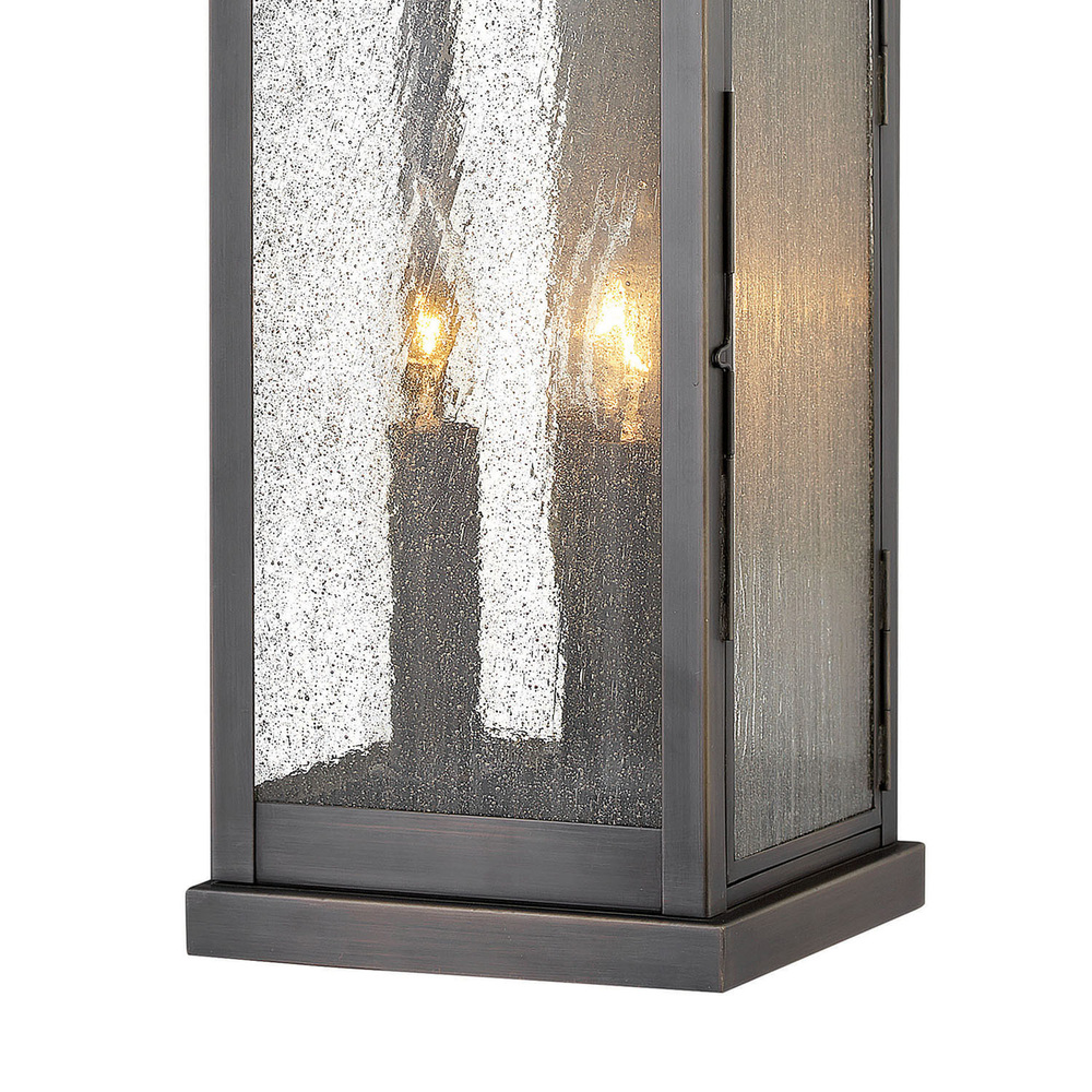 Revere is a traditional coach lantern in solid brass with clear seedy glass panels. The glass, faux candle sleeves and classic candelabra bulbing complete the authentic appearance.