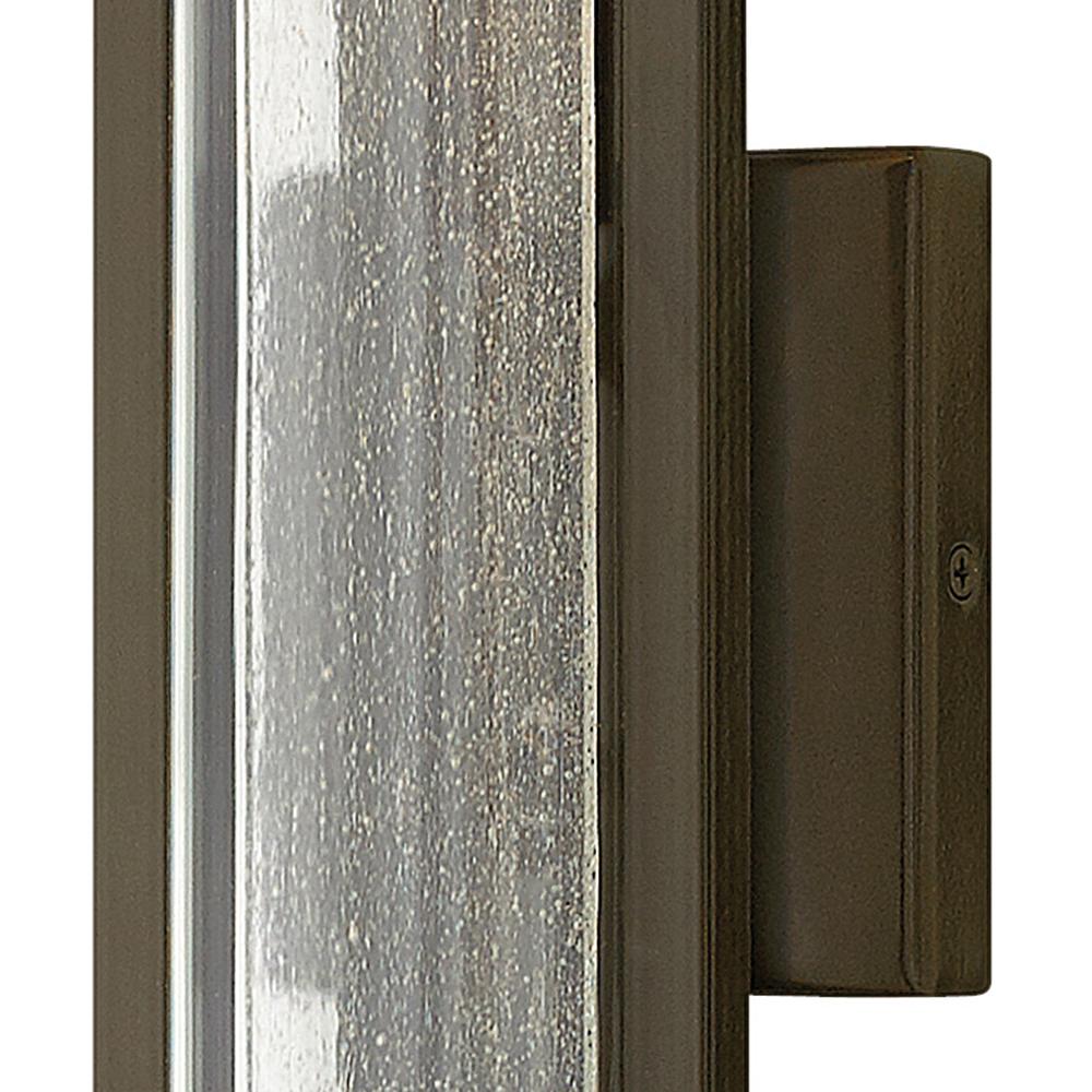 The sleek design of the Mist collection discreetly emphasizes its contemporary heritage, featuring a prominent interior panel of clear seedy glass captured on both ends and encased in a protective clear acrylic cylinder. Its solid aluminum construction is underscored by bold Satin Black and Bronze finish options. Mist is both Dark Sky and ADA compliant.