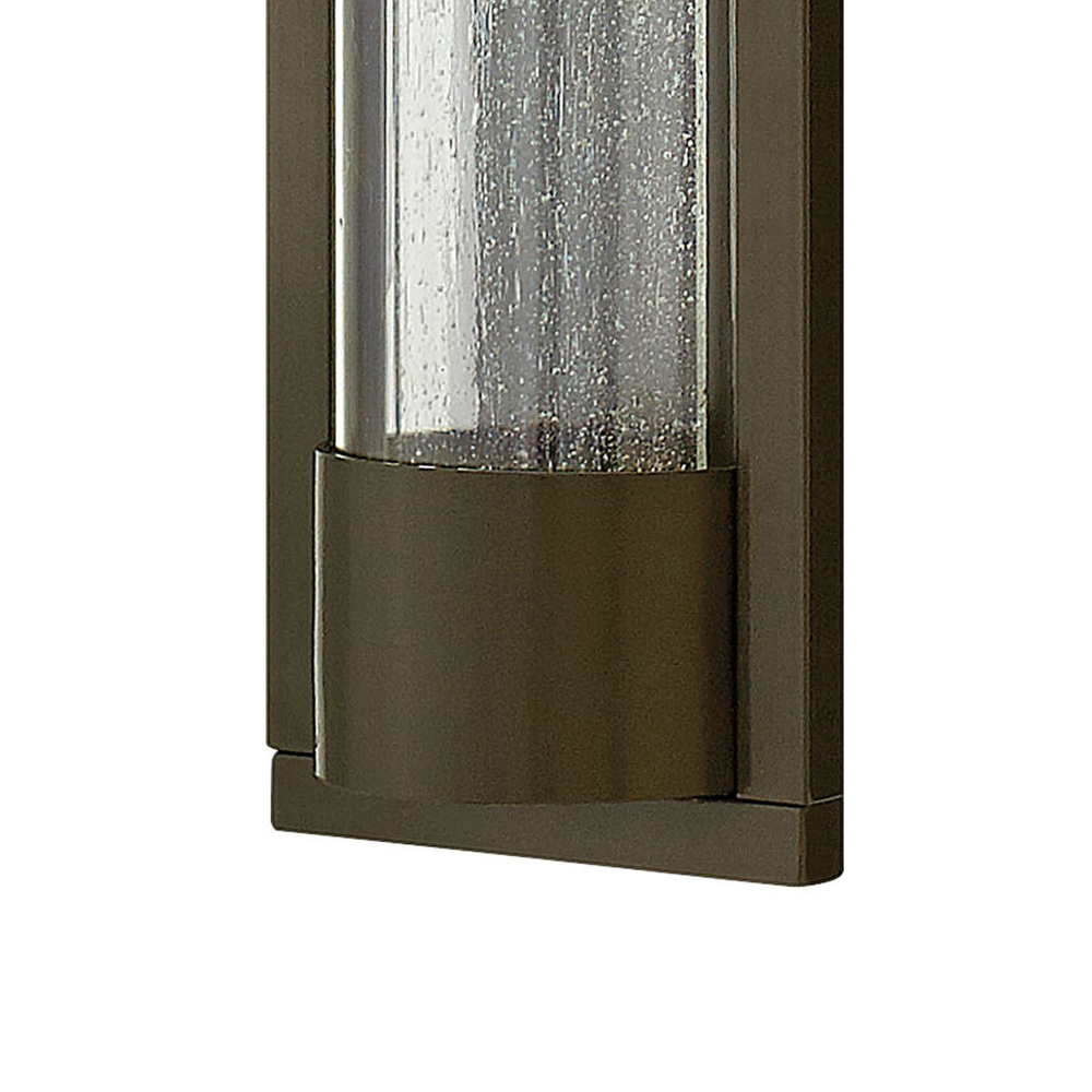 The sleek design of the Mist collection discreetly emphasizes its contemporary heritage, featuring a prominent interior panel of clear seedy glass captured on both ends and encased in a protective clear acrylic cylinder. Its solid aluminum construction is underscored by bold Satin Black and Bronze finish options. Mist is both Dark Sky and ADA compliant.