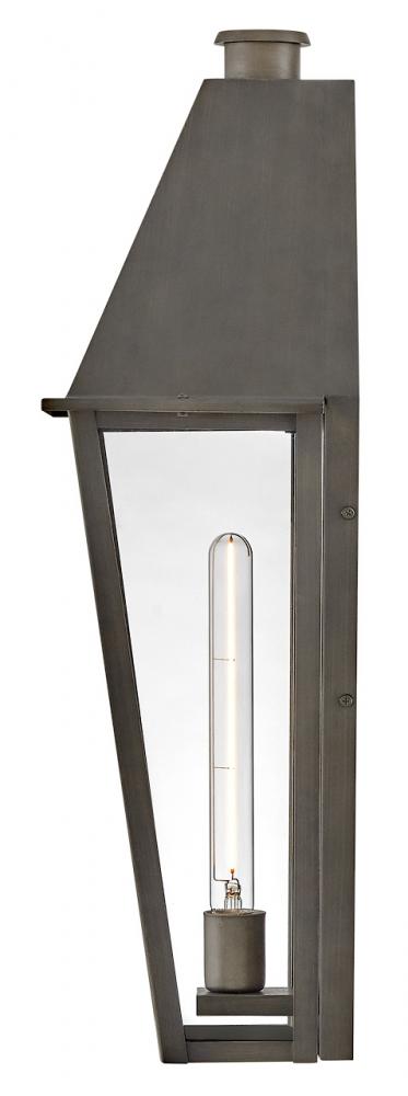 Endsley’s stately, modern gas lantern design features an oversized roof with a simple chimney, complemented by tall, clear glass and a painted, artisanal Blackened Brass finish. Each dignified fixture embraces traditional architectural details yet feels right at home in contemporary outdoor spaces.