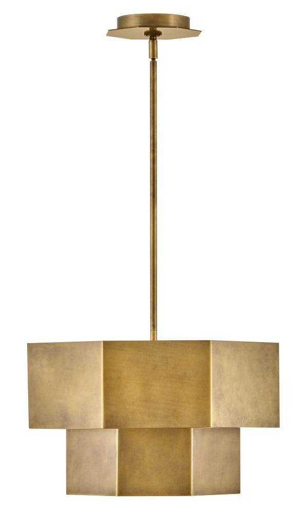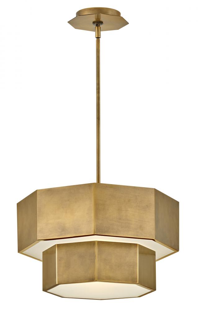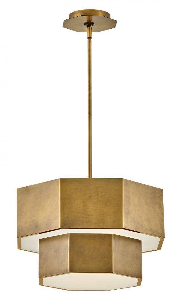 View the many sides of Facet. Interesting angles combine with bold metal features to create an edgy and contemporary profile that is unpretentious yet unforgettable. Hexagonal etched glass is showcased by Heritage Brass or Black Oxide finishes.