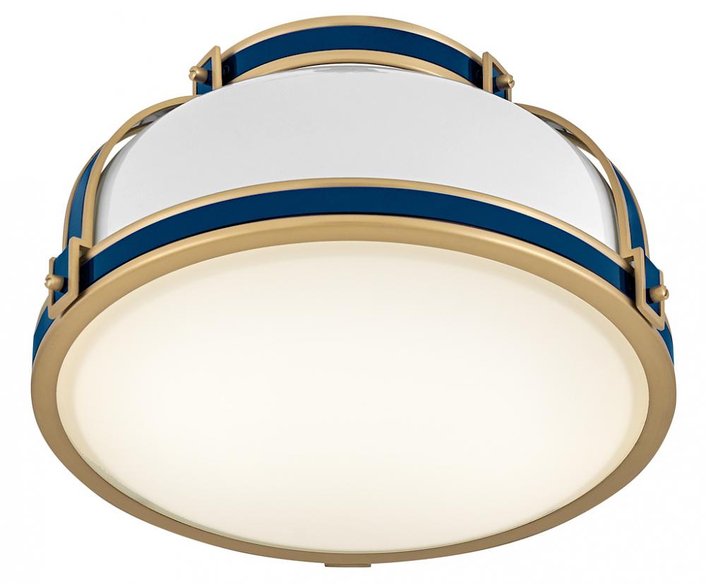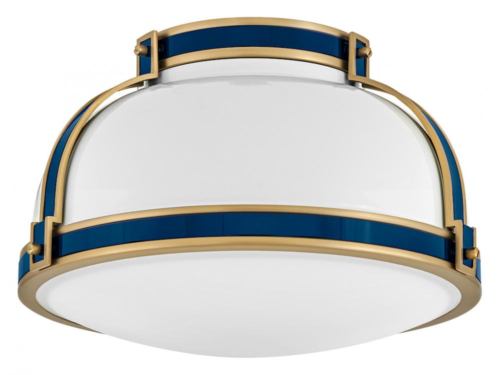 Timeless with a classic equestrian aesthetic, Barton’s metal dome shade with double-strap design is available in Matte Black, Matte White, or Gloss White with Navy finishes complemented by Lacquered Brass and an etched opal glass diffuser.