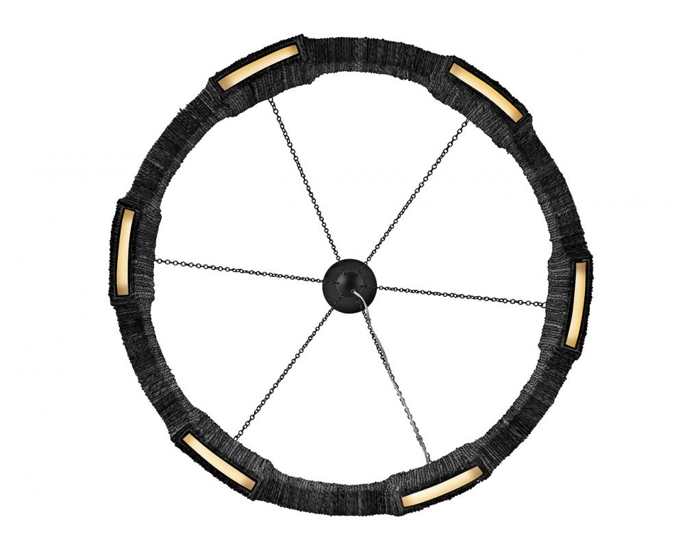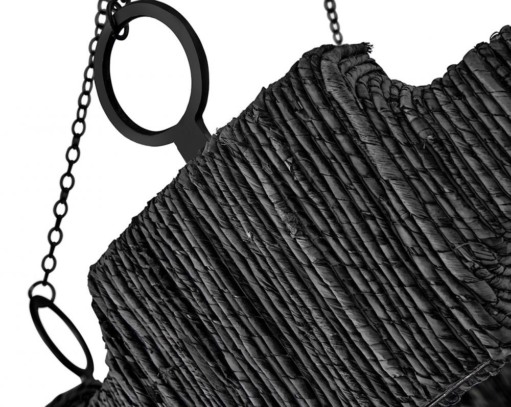 Raffi's coastal bohemian vibe is balanced by its distinctively modern shape. A unique LED design offers abundant light, while a slim frame hand-wrapped in natural reeds provides unexpected texture. Bold Carbon Black or Burnished Gold finishes perfectly complement any color palette.