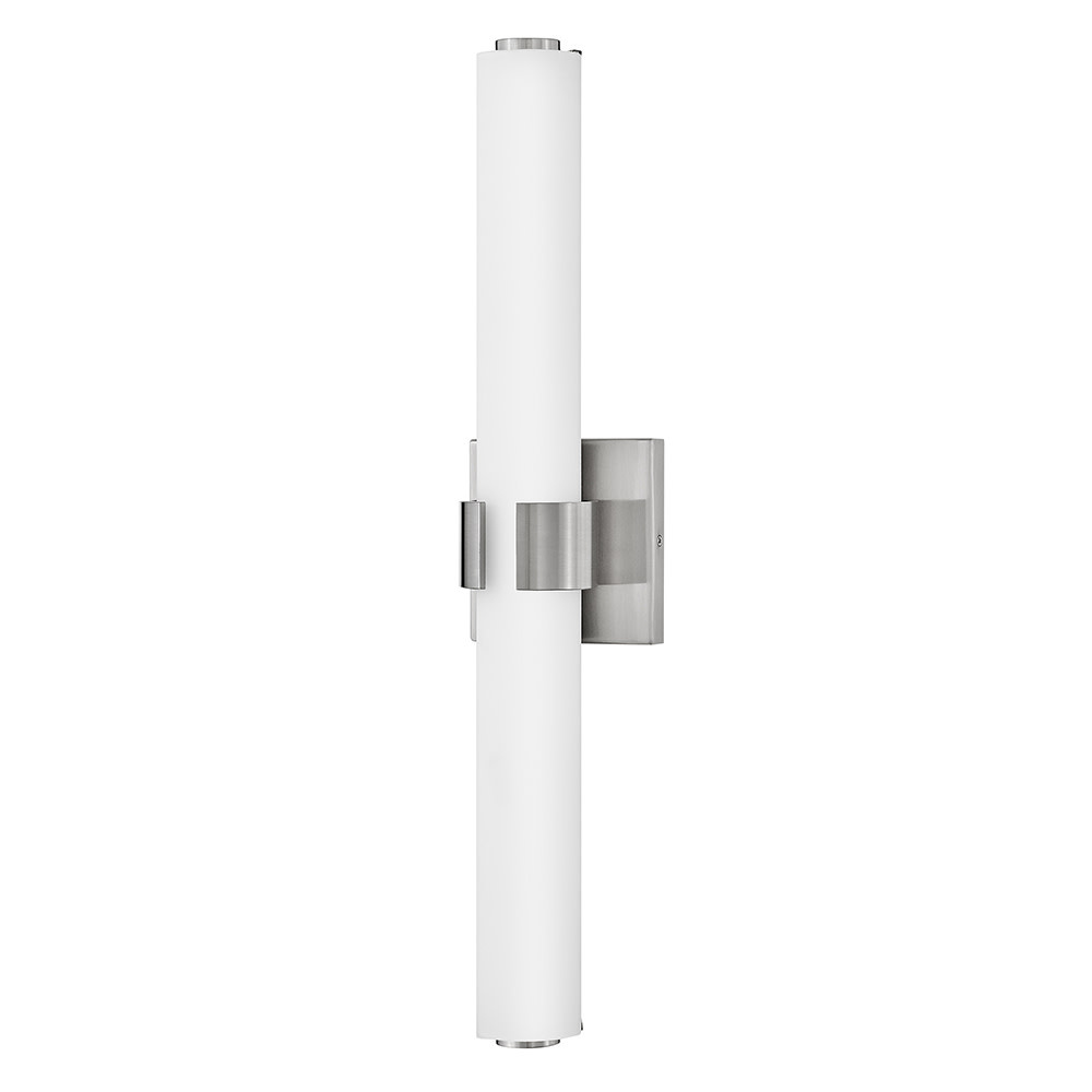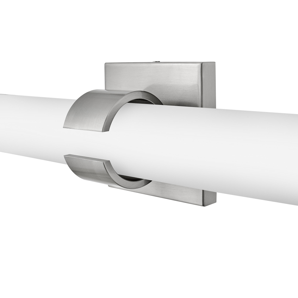 Bold and balanced are the defining elements of Aiden. A striking, signature cuff centers the etched white glass baton, while matching end caps complete the simple symmetry. The clean transitional silhouette can be mounted vertically or horizontally with Invisimount for a look that is as flexible as it is fashionable.