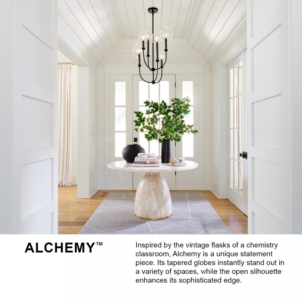 Inspired by the vintage flasks of a chemistry classroom, Alchemy is a unique statement piece. Its tapered globes instantly stand out in a variety of spaces, while the open silhouette enhances its sophisticated edge.