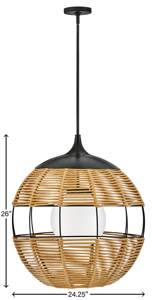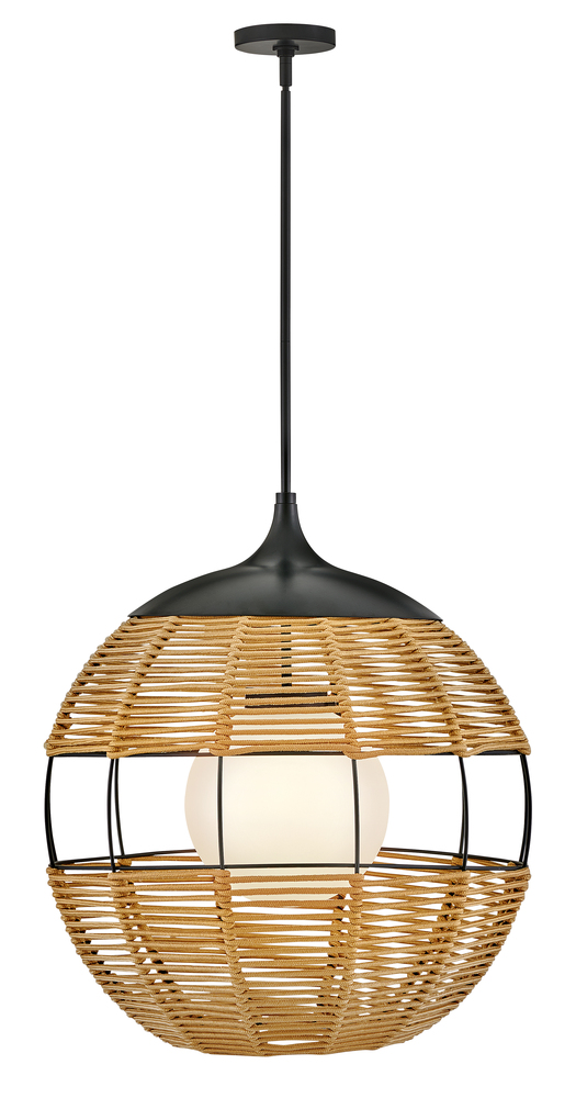 Maddox boasts an edgy, bohemian aesthetic with an open-weave design and geometric shape. This orb pendant features weather-resistant nylon rope in Black or Natural with an etched opal globe nestled inside. Maddox casts the perfect outdoor ambient light to accentuate modern outdoor living spaces.