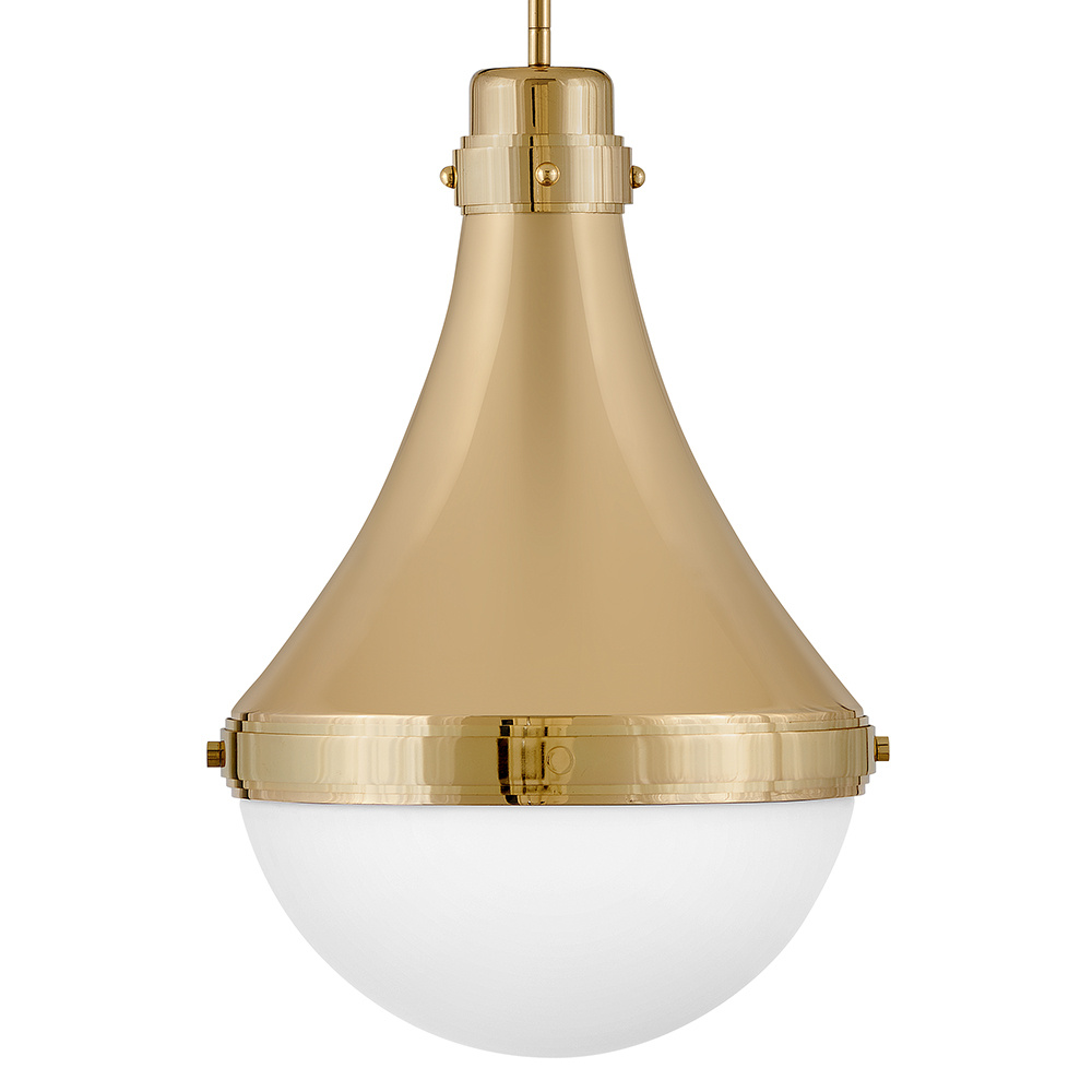 Oliver features an eye-catching sleek spun metal shade and etched opal glass shade beneath. Sleek metal bands and knobs add interest and reinforce its modern-meets-traditional style. Oliver is available in a robust lineup of finish combinations.