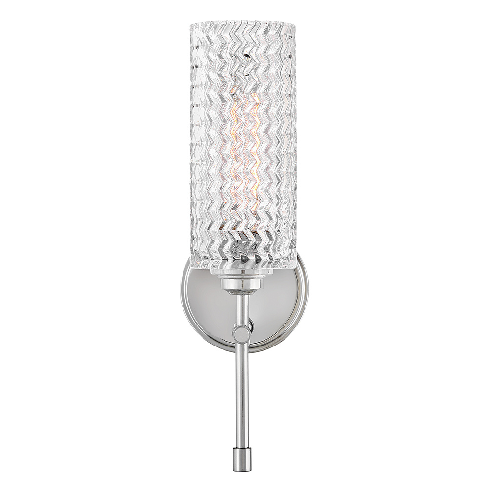 Traditional elegance with a modern edge defines Elle's graceful design. Rich chevron cut glass provides interesting light refraction and is a dramatic focal point whether the light is on or off. The gleaming metal finish adds to the glam design that gives a touch of radiance to any space.
