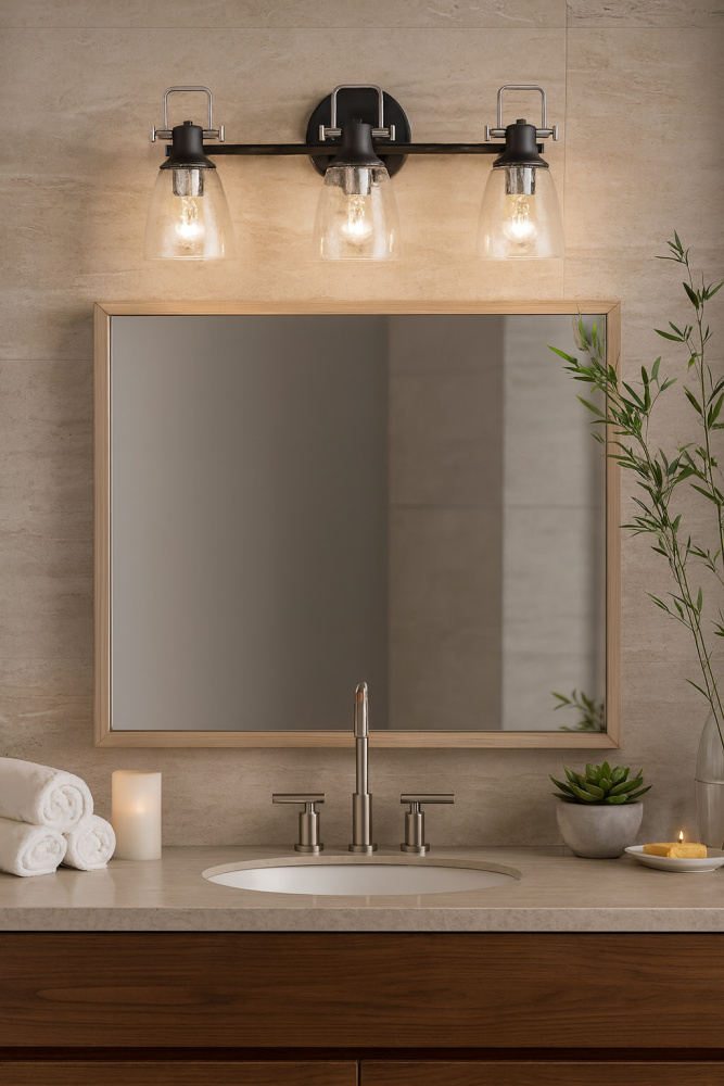 With style elements that blend both hip and historical, Easton exudes a modern industrial vibe. Bold clear seedy glass shades pair with a distinctive top yoke and vintage-inspired knobs for a robust silhouette.