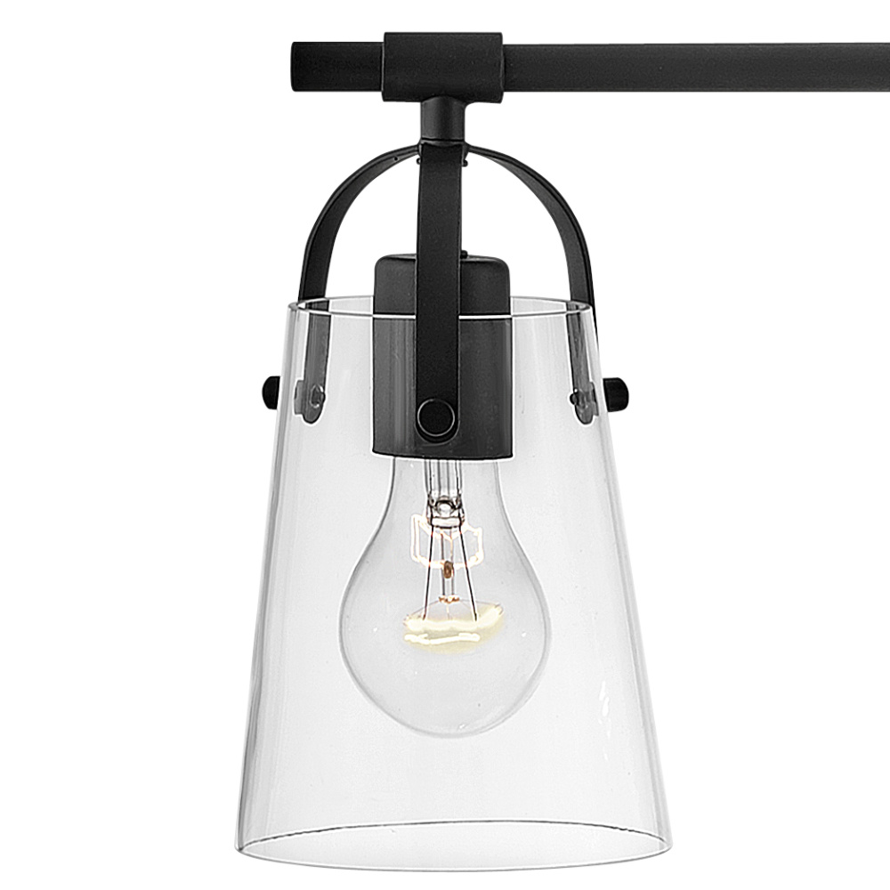 Clean and airy, Foster breathes composed simplicity into any bath space. Softly tapered glass shades suspended from arched handle prongs create a sophisticated transitional silhouette, enhanced by practical yet stylized details.