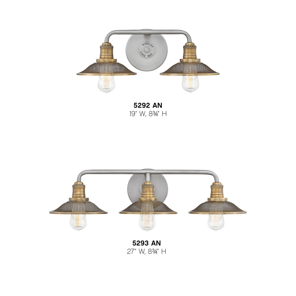 Rigby is inspired by the Americana barn light, reborn as a chic interior retro classic. Features such as cast socket covers, mesh shades, canopy detail and two-tone finish options combine the best in both vintage and industrial design elements.