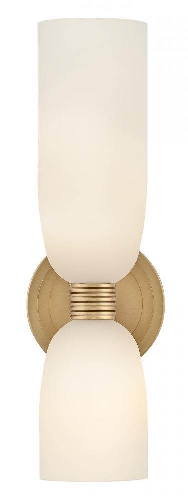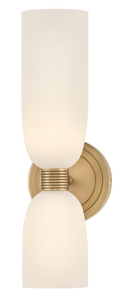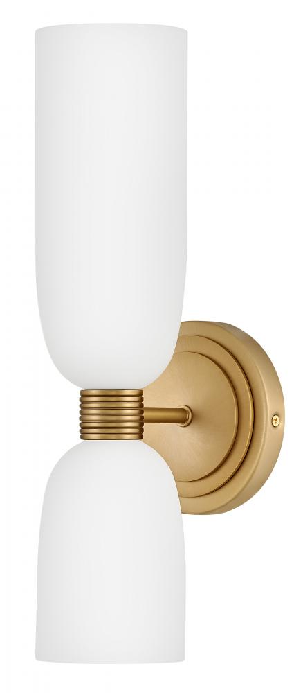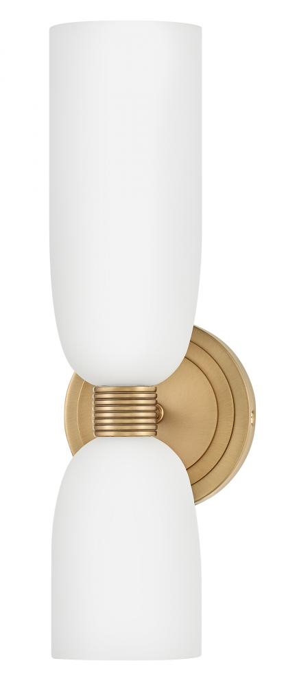 Graceful curves and delicate details define Tallulah. The smooth etched opal glass adds a touch of softness to balance the ribbed metal cuffs. The stepped oval backplate has a nuanced retro look that makes this vanity light the perfect addition to any bath décor. Tallulah is part of the Lisa McDennon Collection.