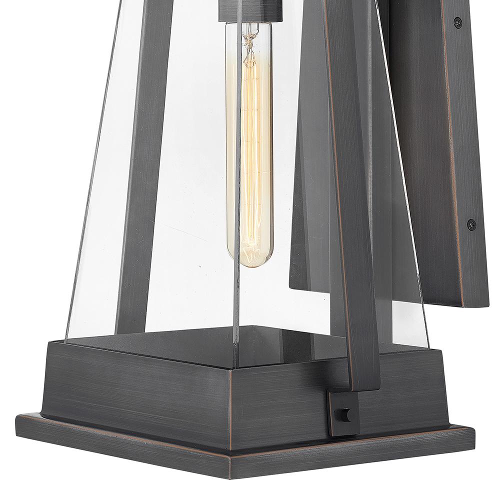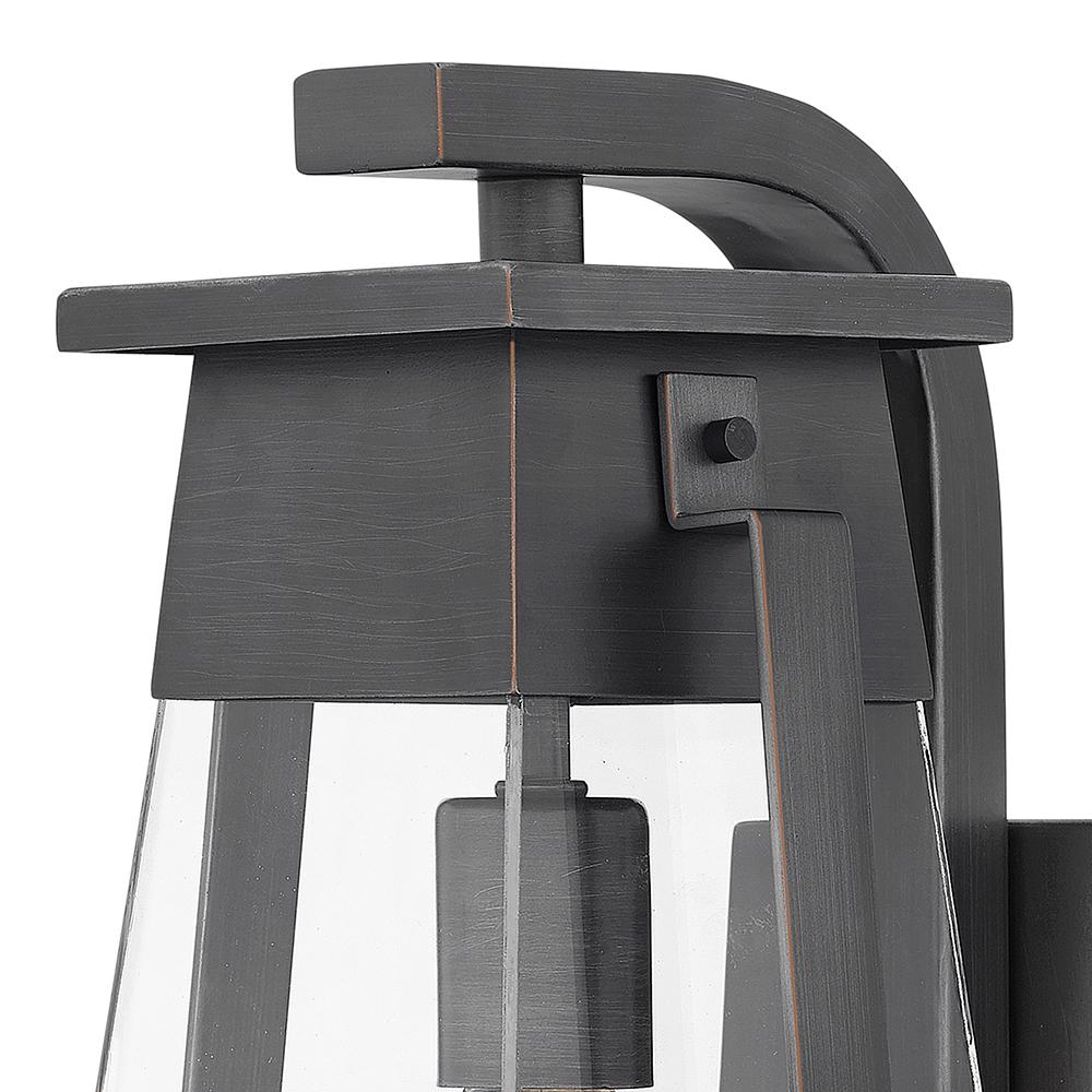 Arcadia smartly transforms a classic carriage lantern into fresh, transitional design with bold features complemented by striking tapered glass. Constructed of durable aluminum in an Aged Copper Bronze finish, Arcadia is a statement-making style that will instantly enhance any exterior. Ideal for vintage filament bulbs.