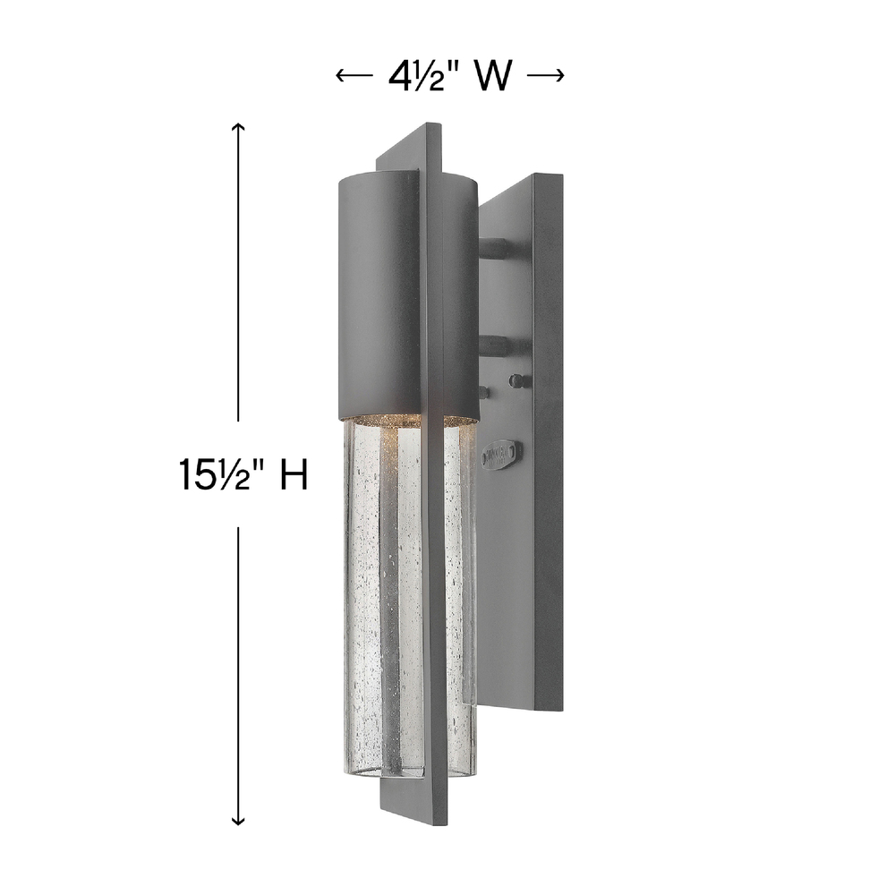 Shelter’s minimalist style in aluminum creates a chic, dramatic statement as the light from above grazes through its clear seedy glass. Shelter comes standard Dark Sky compliant.