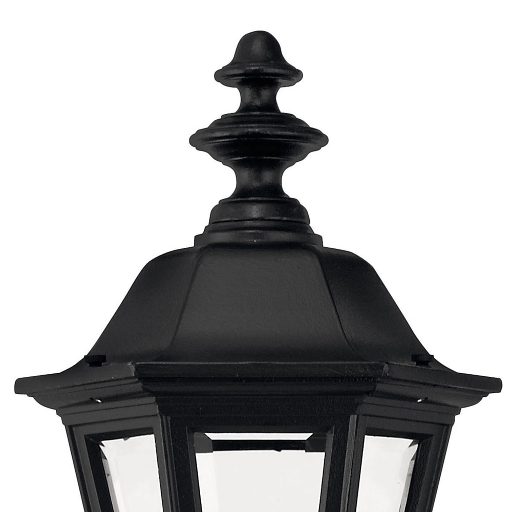 Manor House is a classic lantern design featuring durable cast aluminum, clear beveled glass panels and a bold Black finish. Select-A-Lite options come standard with both candelabra and medium based sockets.