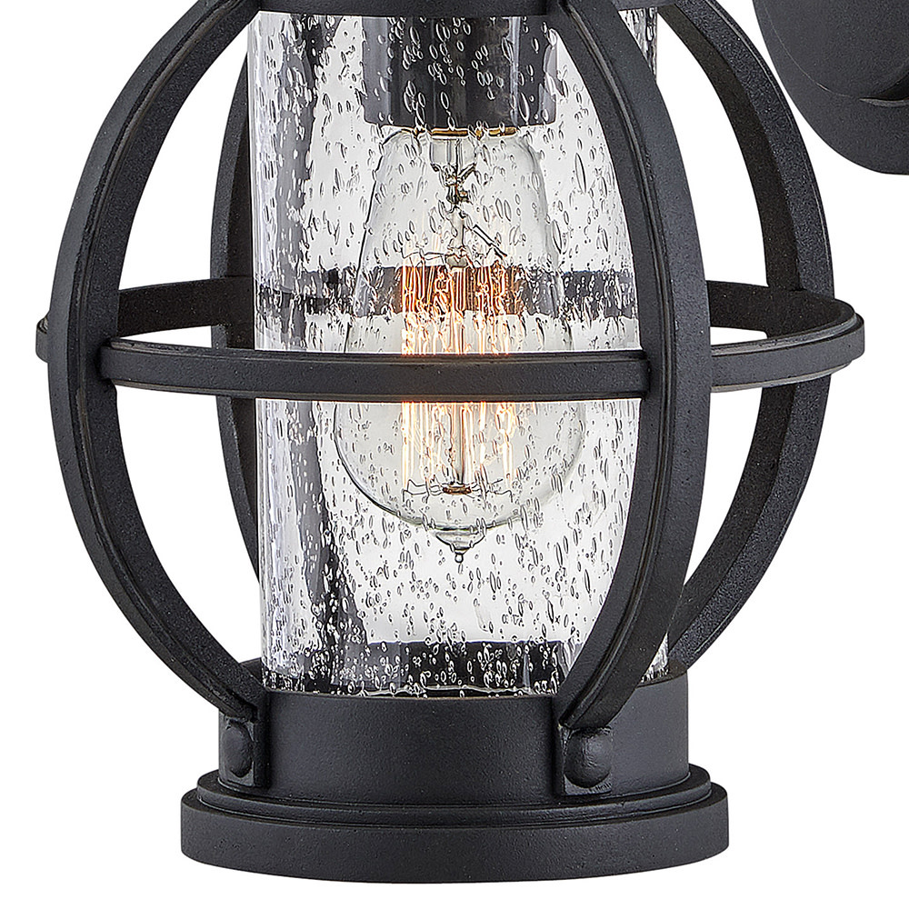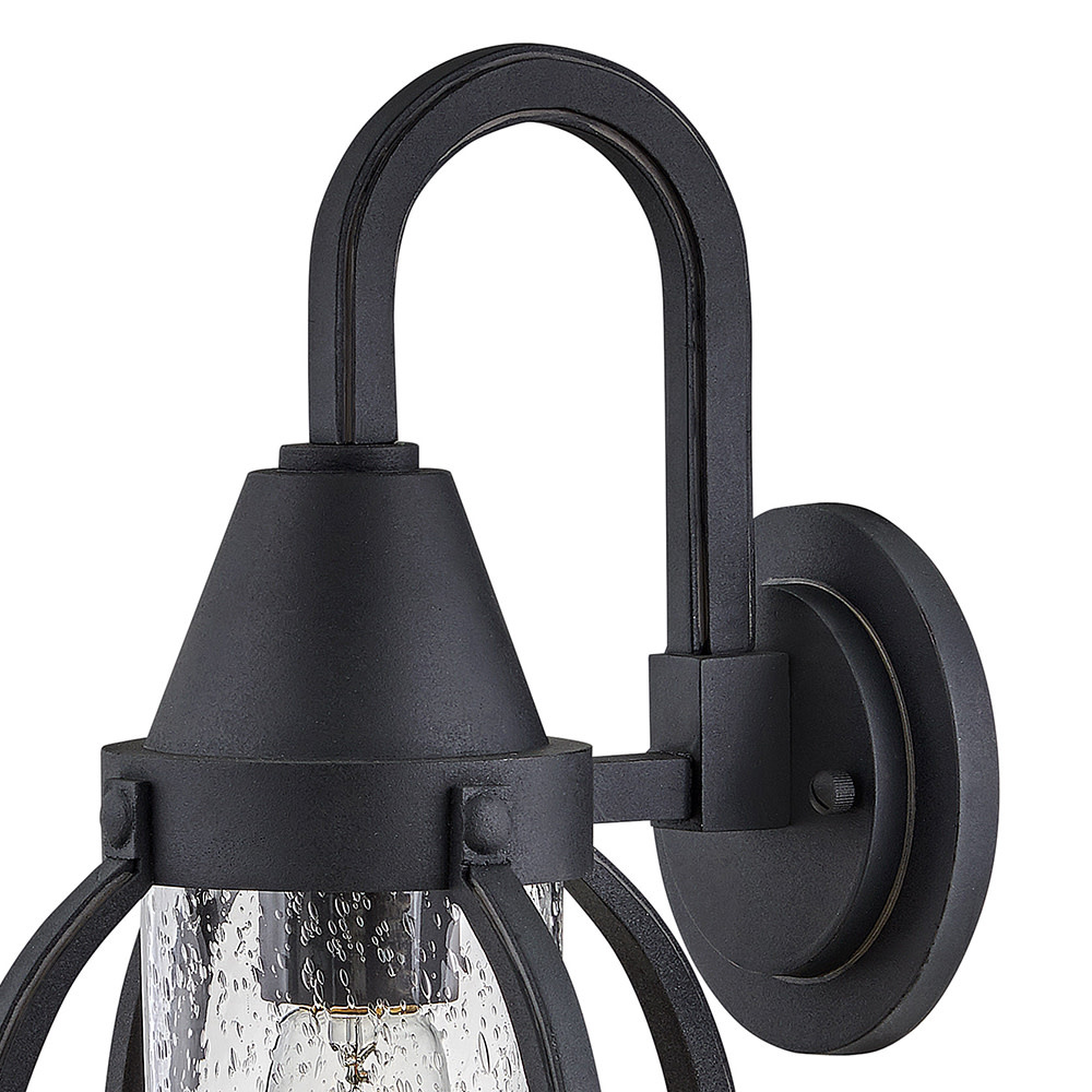 Inspired by the traditional onion-style lantern, Chatham boasts a flair of nautical charm. Featuring a refined top scroll arm for a more casual and transitional style, it encompasses a gleaming, nautical seedy glass.Chatham is designed to withstand even the harshest elements. It is available in a Museum Black finish that is resistant to rust and corrosion with a 5-year warranty.