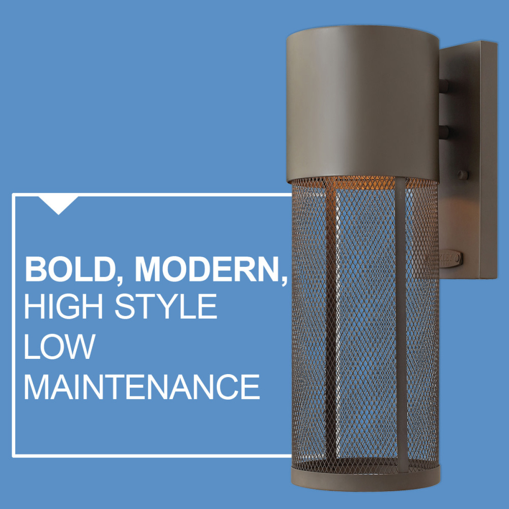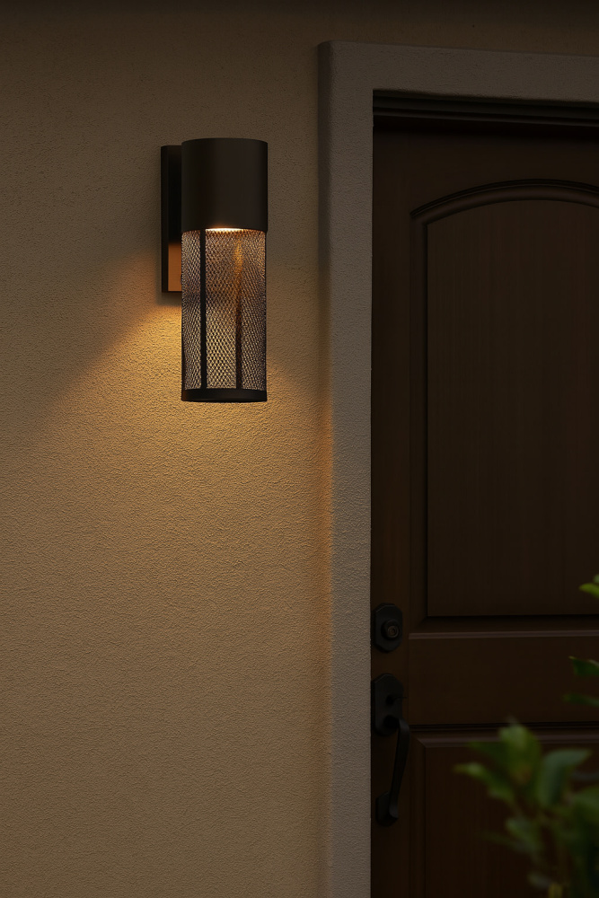 Aria is a contemporary style that effortlessly complements the façade of any exterior. Its modern shape in durable aluminum is enhanced by a stainless steel mesh shade. Aria’s high style and low maintenance comes standard Dark Sky compliant.