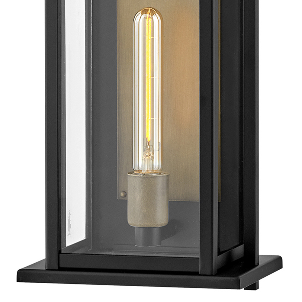 Sleek but stately, Langston demands attention with its bold silhouette in Black and a gleaming Burnished Bronze reflector. Available as an over-scaled option, Langston delivers a stunning light beam spread thanks to its extra-large panes of clear glass.