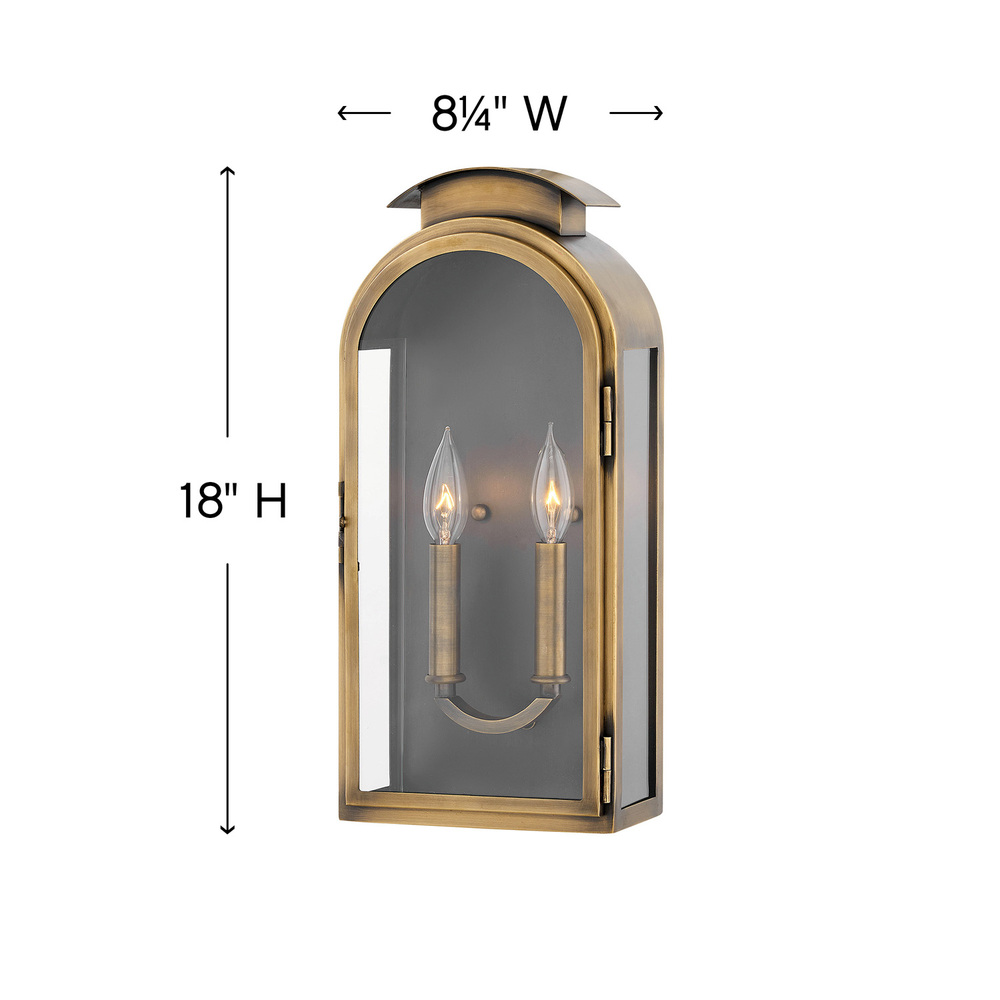 A stunning, rounded silhouette and arched roof composed of solid brass make Rowley a design standout. Weaving elements of classic Americana and industrial flair into a chic design with timeless appeal, this style features generous panes of clear glass and a functional front door for ease of bulbing.