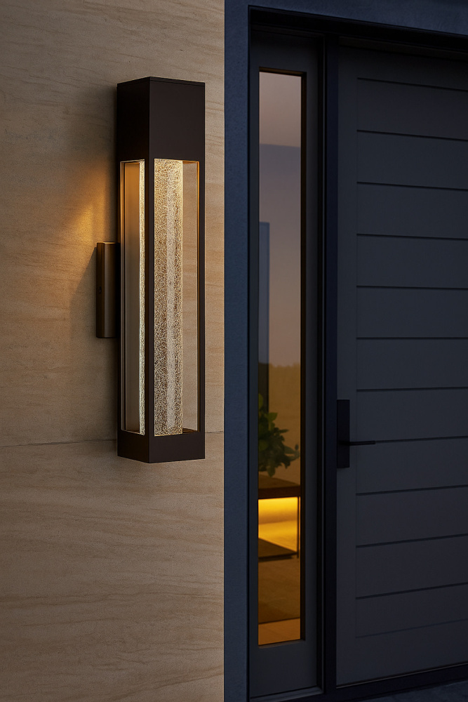Vapor’s streamlined profile allows the spectacular crackled glass to star in this captivating design. The low-profile backplate and stamped metal construction project a sleek, contemporary style statement.
